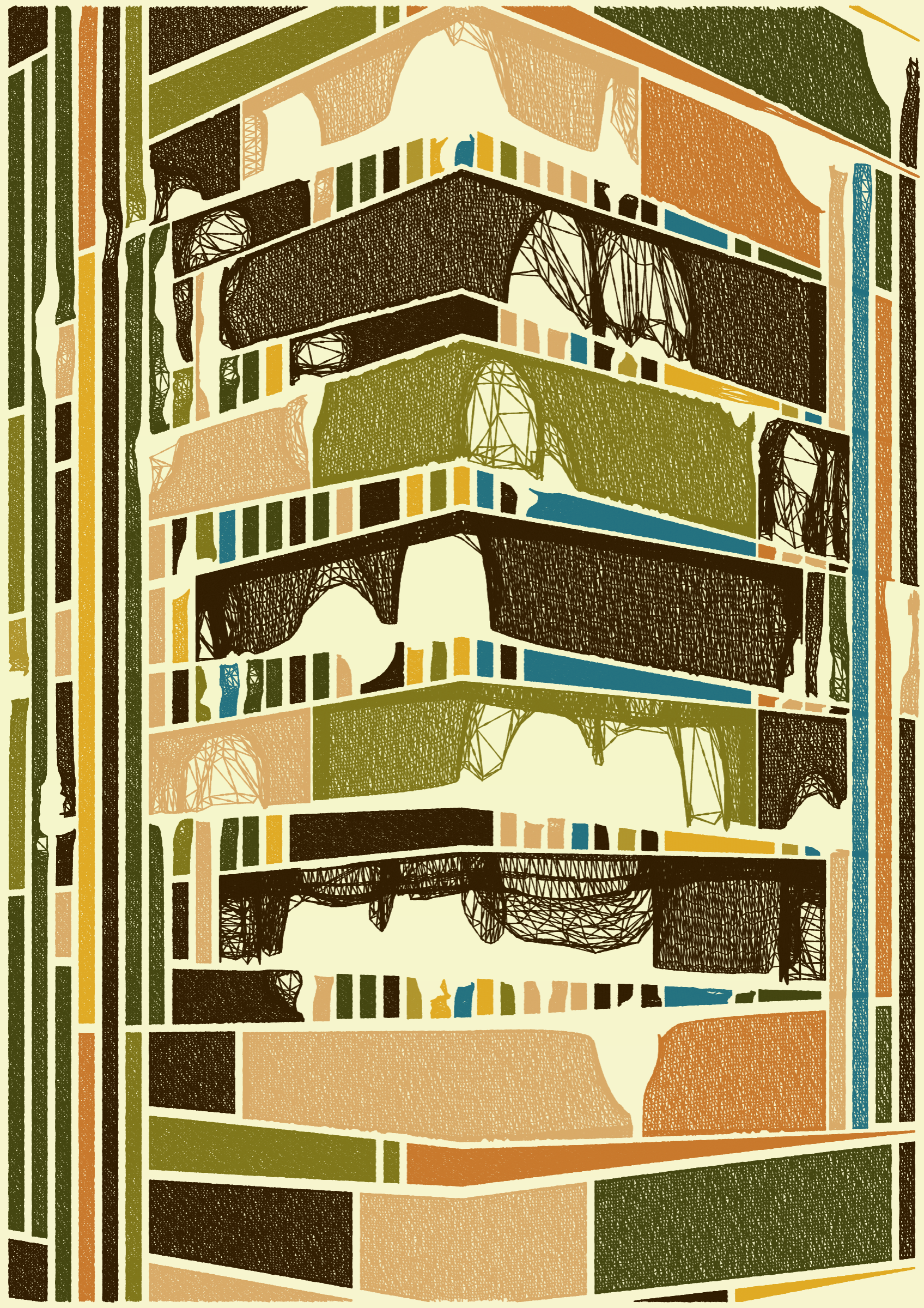 "Edifice" is a series of 976 massive, deteriorating structures built on strange terrain. It is an exploration of buildings being conceptualized, constructed, and eroded away under a wide variety of conditions. Edifice's outputs run the gamut between minimal and maximal, with some showing few large, static blocks of color, and others many small, highly textured and warped shapes. Each image is progressively constructed in front of the viewer's eyes. It is a system full of surprises that I'm excited to share with the world.