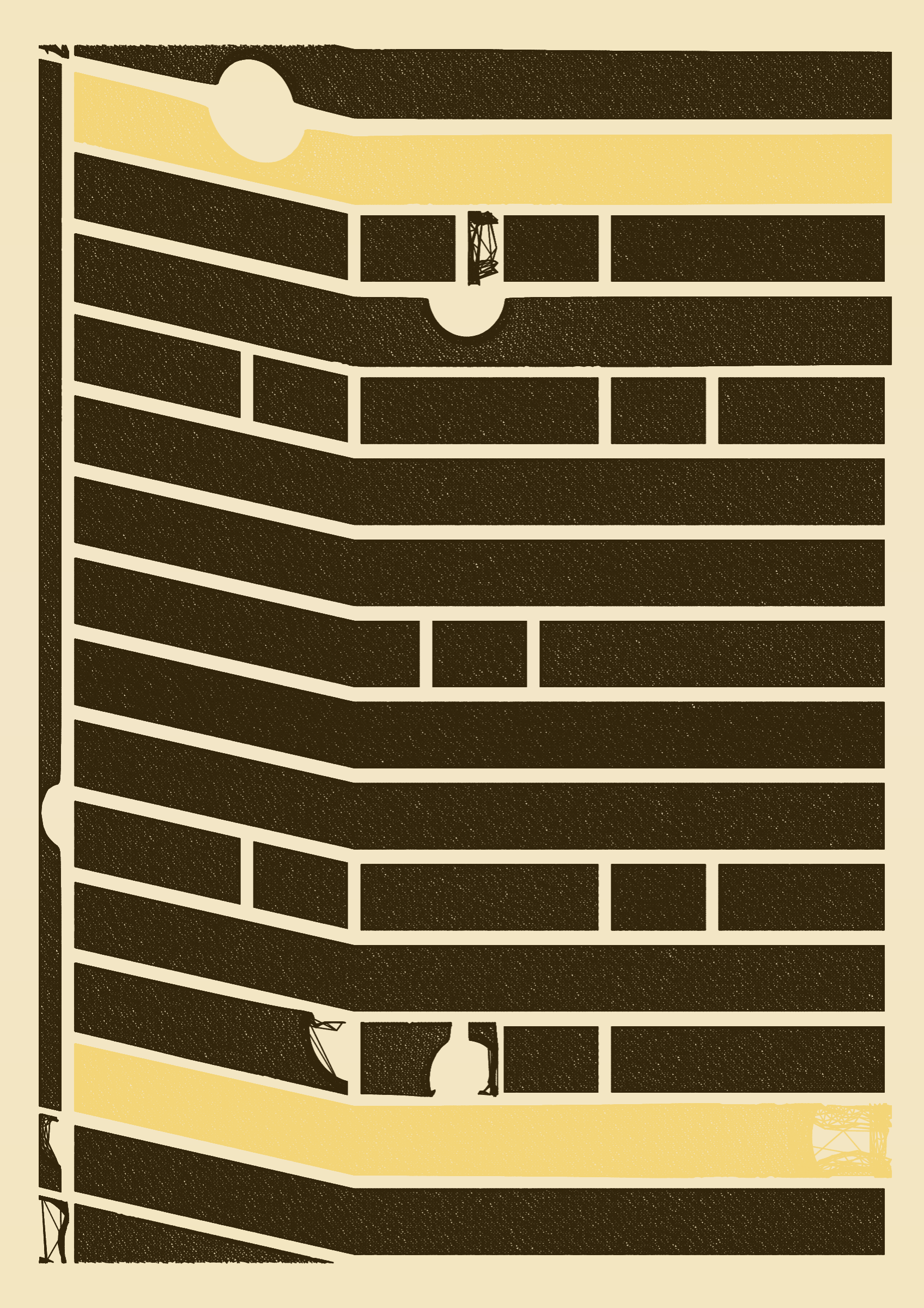 "Edifice" is a series of 976 massive, deteriorating structures built on strange terrain. It is an exploration of buildings being conceptualized, constructed, and eroded away under a wide variety of conditions. Edifice's outputs run the gamut between minimal and maximal, with some showing few large, static blocks of color, and others many small, highly textured and warped shapes. Each image is progressively constructed in front of the viewer's eyes. It is a system full of surprises that I'm excited to share with the world.