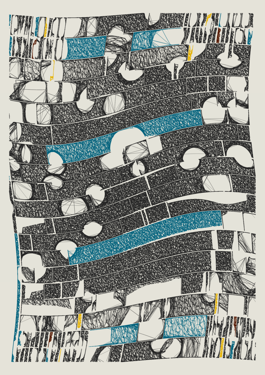 "Edifice" is a series of 976 massive, deteriorating structures built on strange terrain. It is an exploration of buildings being conceptualized, constructed, and eroded away under a wide variety of conditions. Edifice's outputs run the gamut between minimal and maximal, with some showing few large, static blocks of color, and others many small, highly textured and warped shapes. Each image is progressively constructed in front of the viewer's eyes. It is a system full of surprises that I'm excited to share with the world.