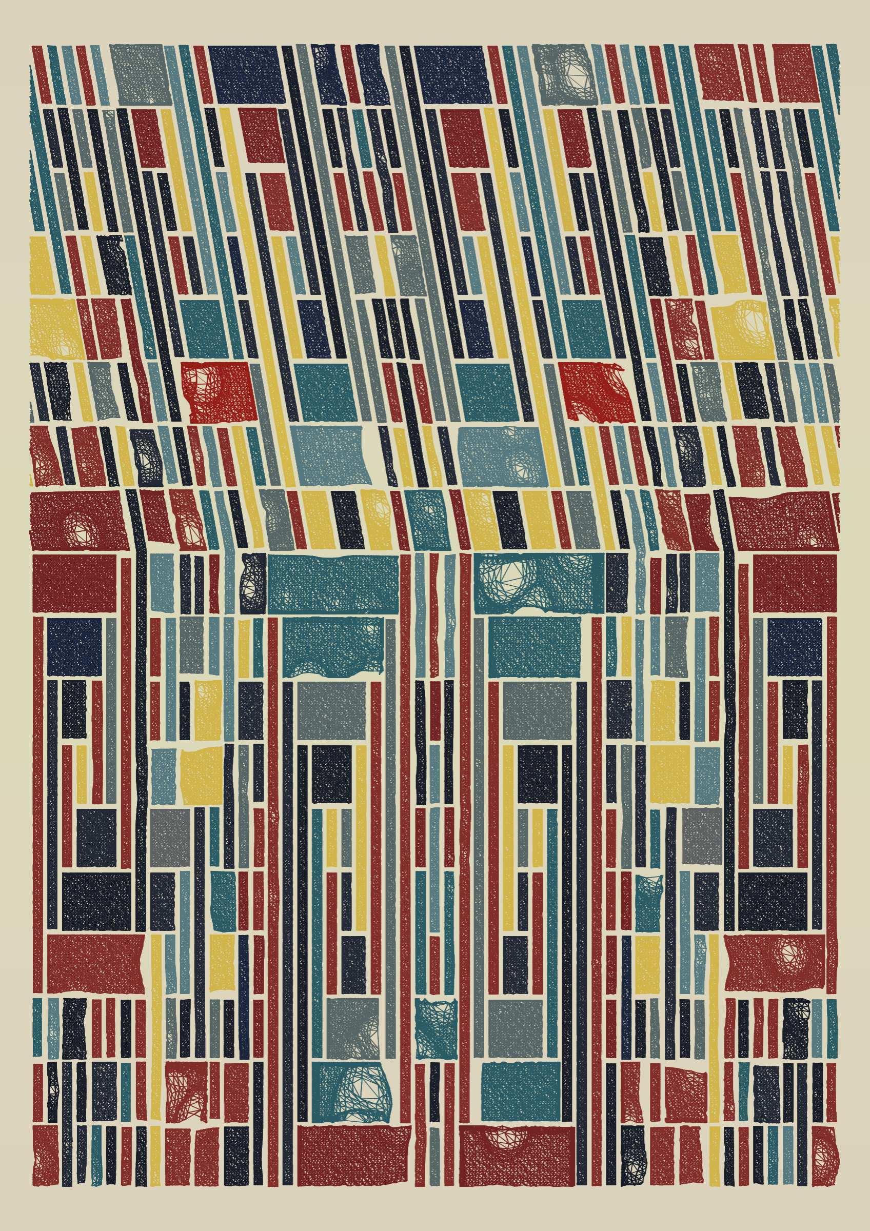 "Edifice" is a series of 976 massive, deteriorating structures built on strange terrain. It is an exploration of buildings being conceptualized, constructed, and eroded away under a wide variety of conditions. Edifice's outputs run the gamut between minimal and maximal, with some showing few large, static blocks of color, and others many small, highly textured and warped shapes. Each image is progressively constructed in front of the viewer's eyes. It is a system full of surprises that I'm excited to share with the world.