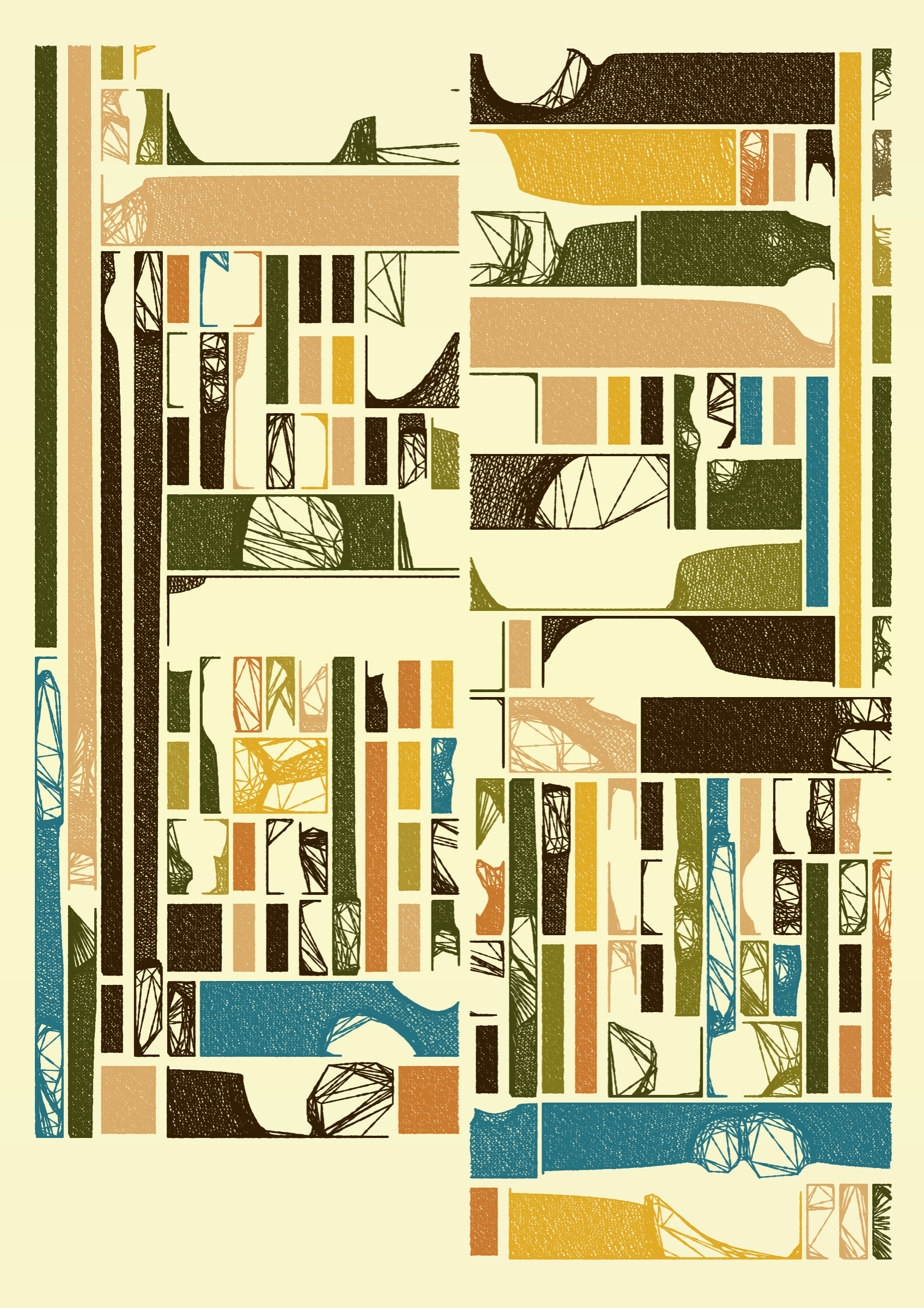 "Edifice" is a series of 976 massive, deteriorating structures built on strange terrain. It is an exploration of buildings being conceptualized, constructed, and eroded away under a wide variety of conditions. Edifice's outputs run the gamut between minimal and maximal, with some showing few large, static blocks of color, and others many small, highly textured and warped shapes. Each image is progressively constructed in front of the viewer's eyes. It is a system full of surprises that I'm excited to share with the world.