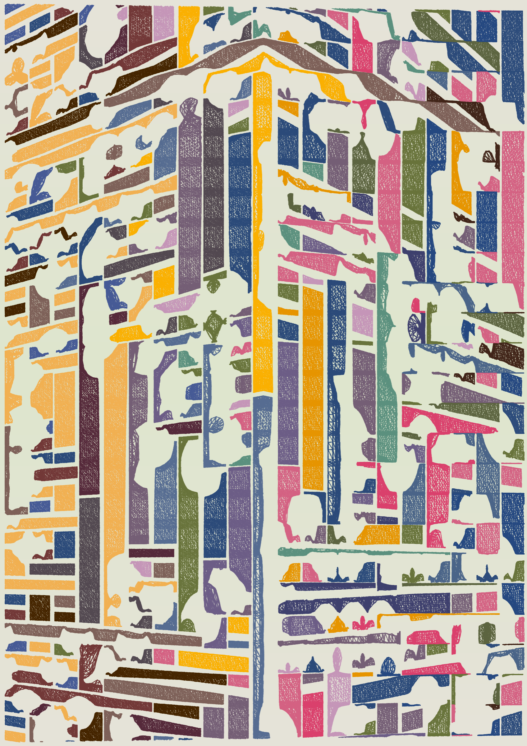 "Edifice" is a series of 976 massive, deteriorating structures built on strange terrain. It is an exploration of buildings being conceptualized, constructed, and eroded away under a wide variety of conditions. Edifice's outputs run the gamut between minimal and maximal, with some showing few large, static blocks of color, and others many small, highly textured and warped shapes. Each image is progressively constructed in front of the viewer's eyes. It is a system full of surprises that I'm excited to share with the world.