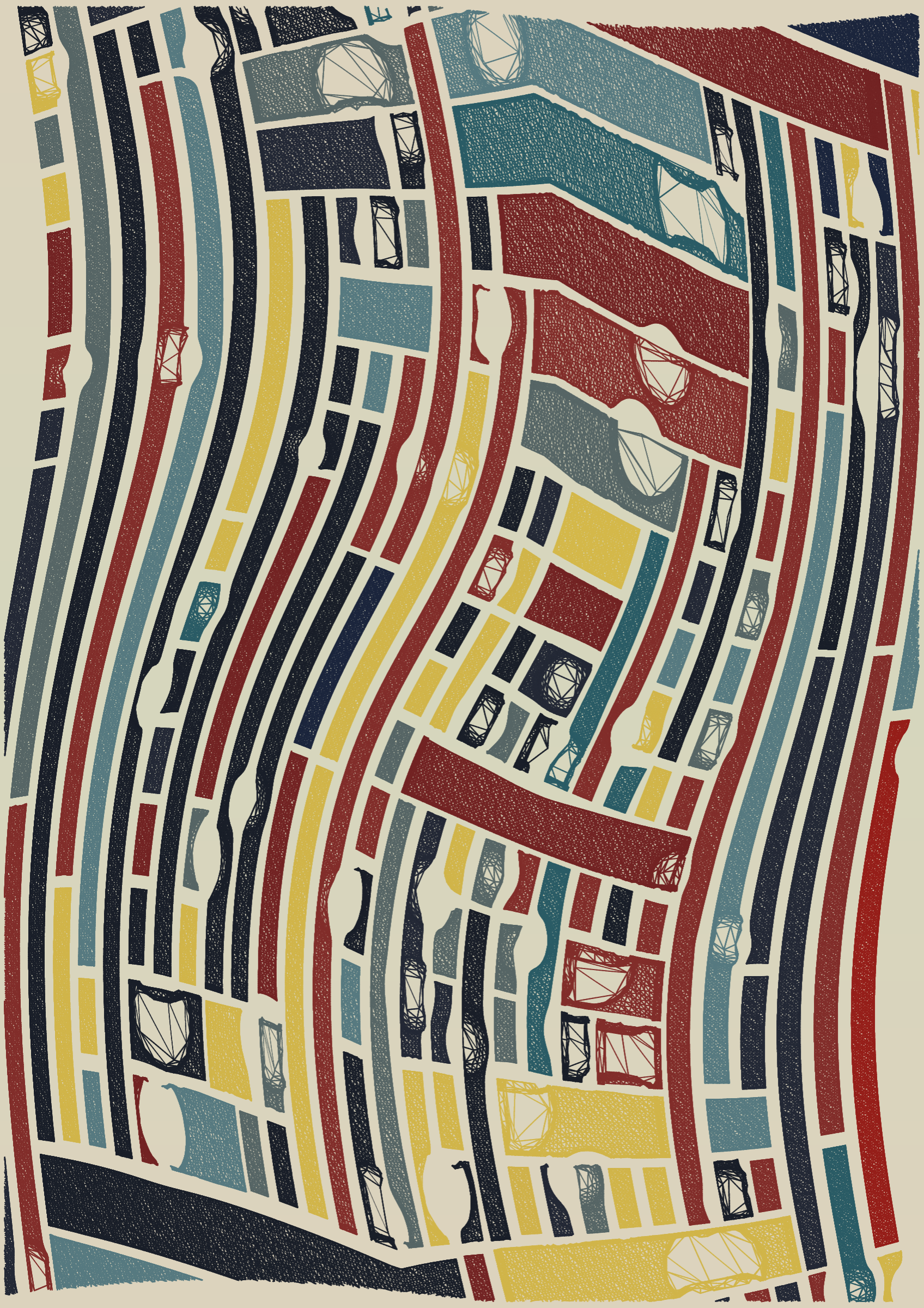 "Edifice" is a series of 976 massive, deteriorating structures built on strange terrain. It is an exploration of buildings being conceptualized, constructed, and eroded away under a wide variety of conditions. Edifice's outputs run the gamut between minimal and maximal, with some showing few large, static blocks of color, and others many small, highly textured and warped shapes. Each image is progressively constructed in front of the viewer's eyes. It is a system full of surprises that I'm excited to share with the world.