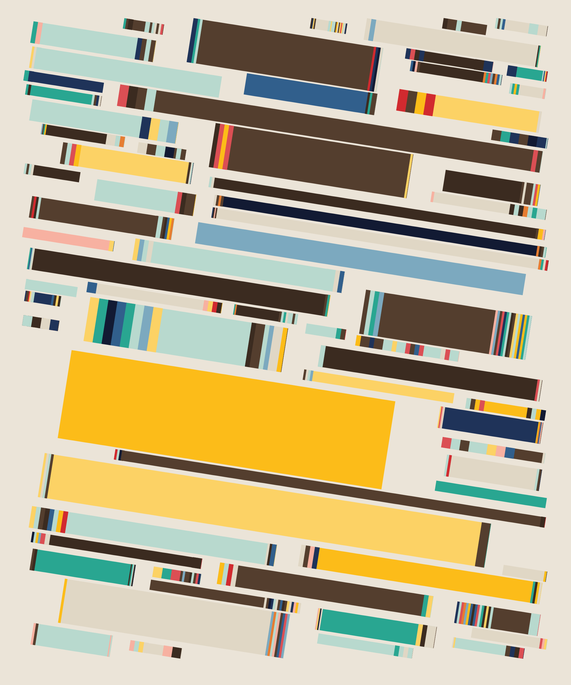 Fidenza is by far my most versatile algorithm to date. Although the program stays focused on structured curves and blocks, the varieties of scale, organization, texture, and color usage it can employ create a wide array of generative possibilities.