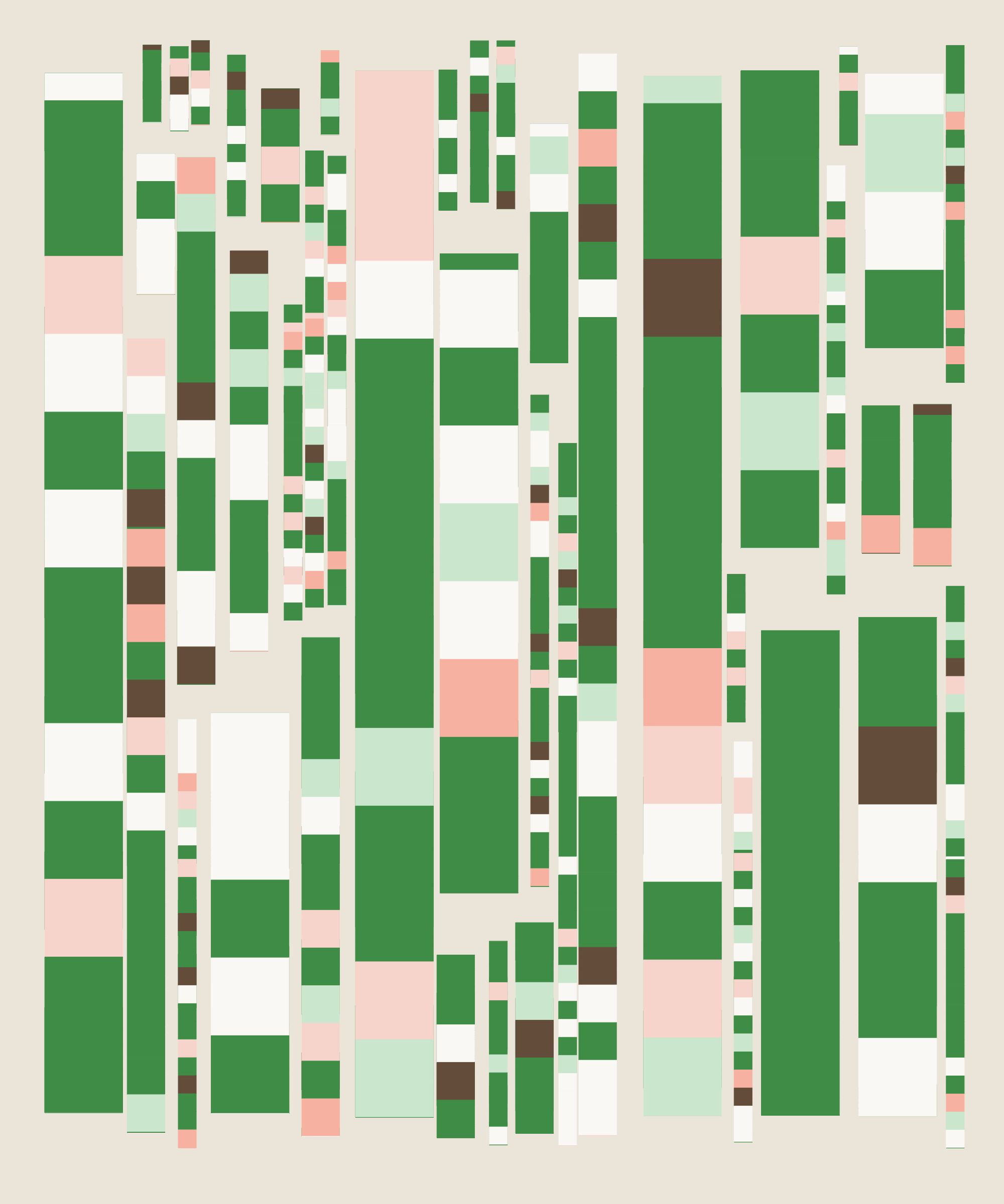 Fidenza is by far my most versatile algorithm to date. Although the program stays focused on structured curves and blocks, the varieties of scale, organization, texture, and color usage it can employ create a wide array of generative possibilities.