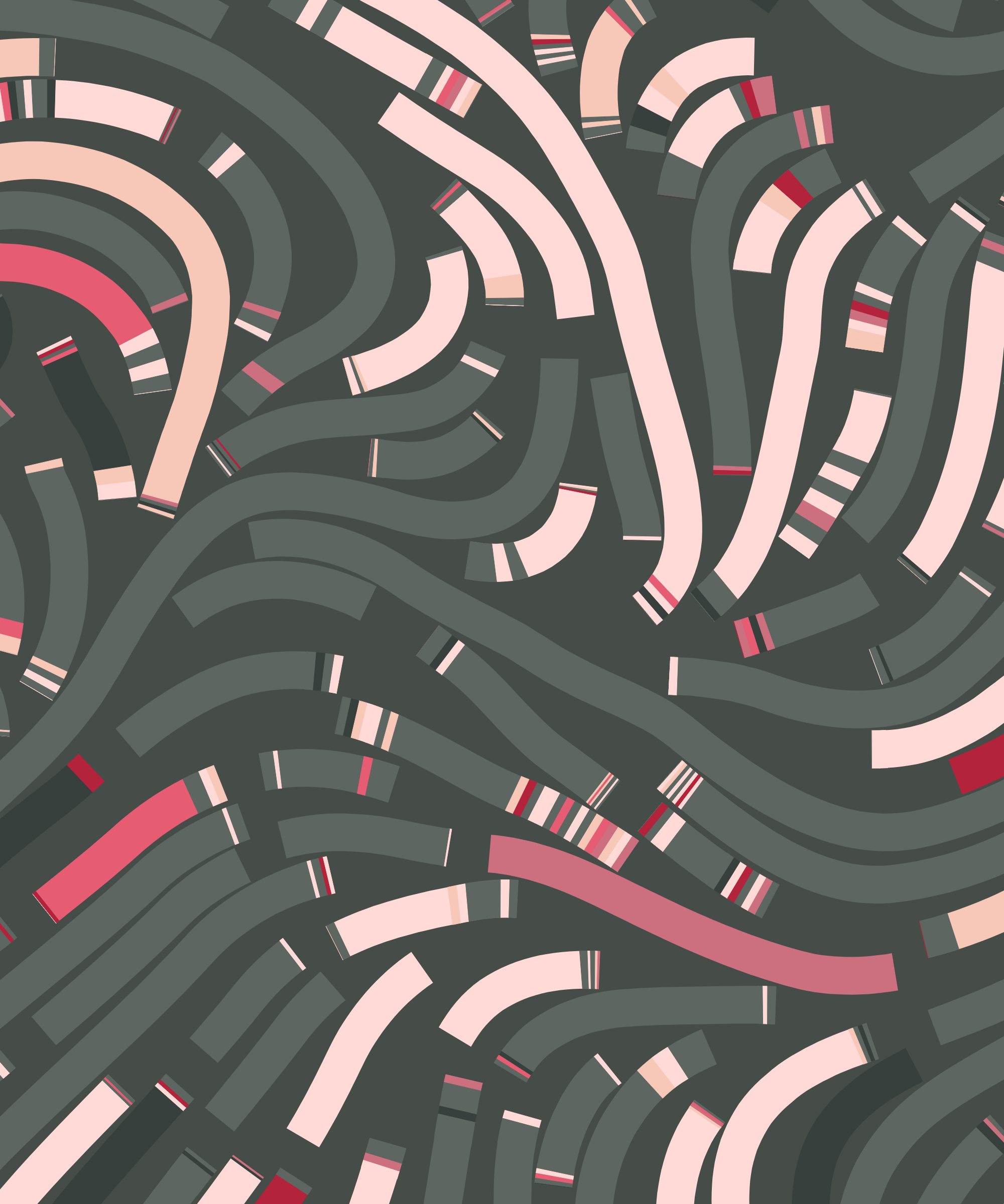Fidenza is by far my most versatile algorithm to date. Although the program stays focused on structured curves and blocks, the varieties of scale, organization, texture, and color usage it can employ create a wide array of generative possibilities.