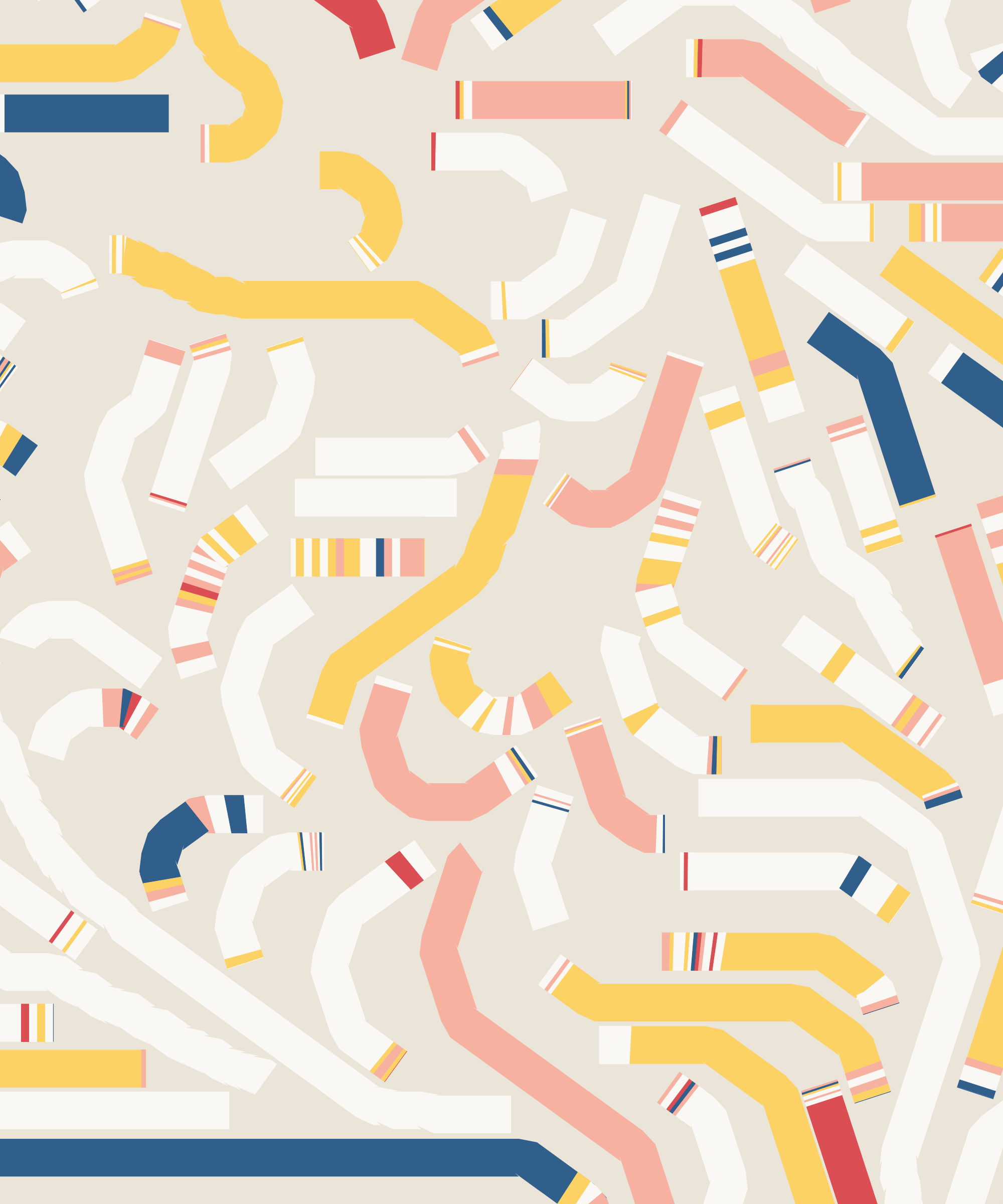 Fidenza is by far my most versatile algorithm to date. Although the program stays focused on structured curves and blocks, the varieties of scale, organization, texture, and color usage it can employ create a wide array of generative possibilities.