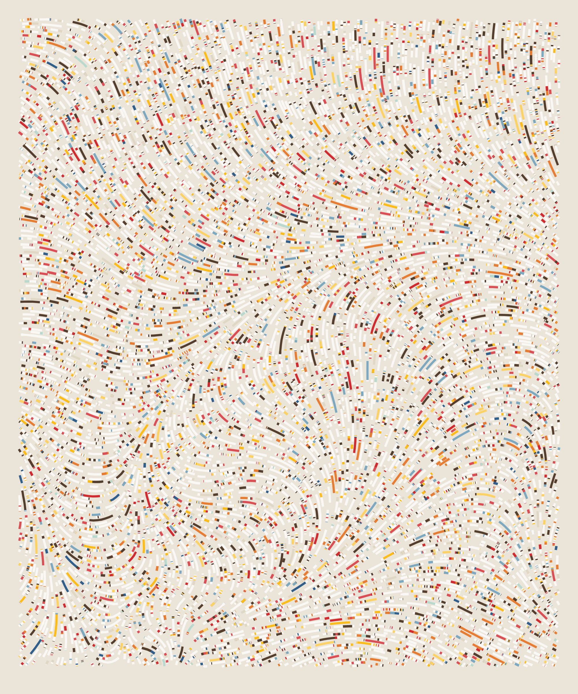 Fidenza is by far my most versatile algorithm to date. Although the program stays focused on structured curves and blocks, the varieties of scale, organization, texture, and color usage it can employ create a wide array of generative possibilities.
