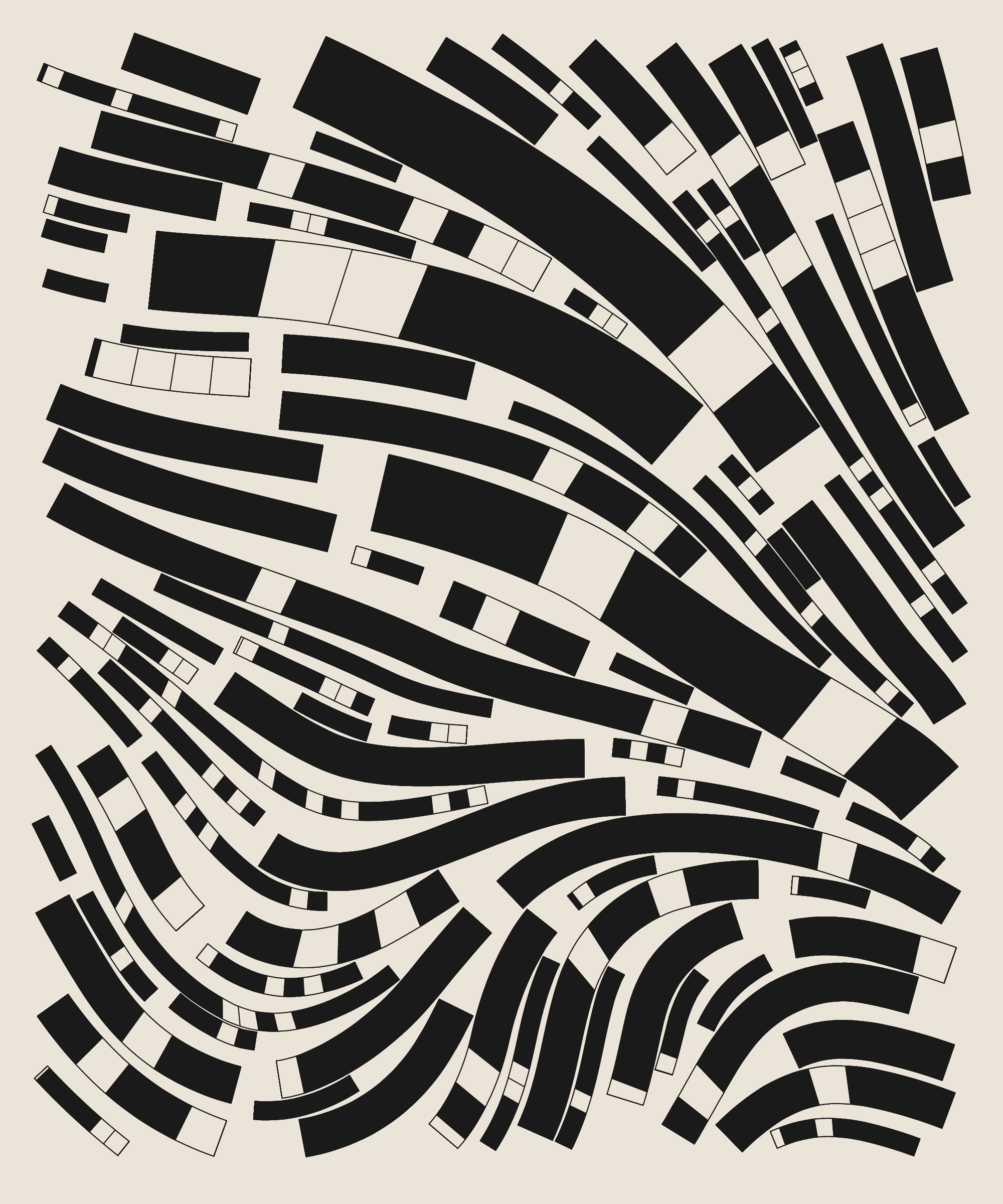 Fidenza is by far my most versatile algorithm to date. Although the program stays focused on structured curves and blocks, the varieties of scale, organization, texture, and color usage it can employ create a wide array of generative possibilities.