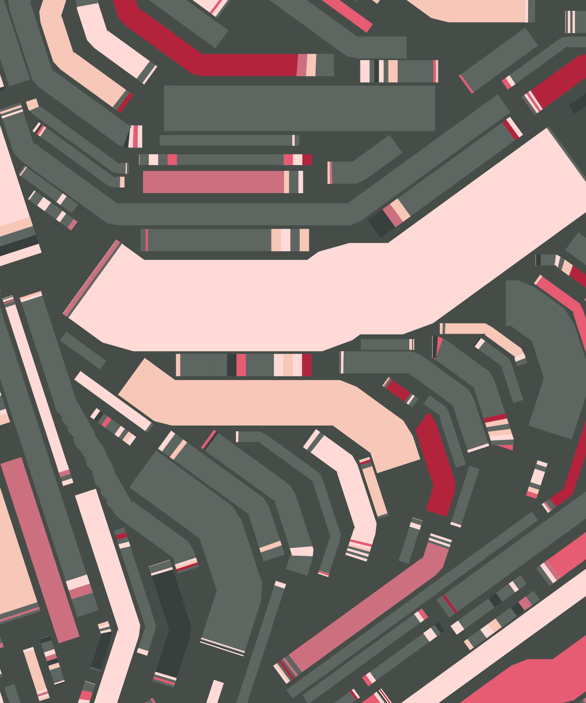 Fidenza is by far my most versatile algorithm to date. Although the program stays focused on structured curves and blocks, the varieties of scale, organization, texture, and color usage it can employ create a wide array of generative possibilities.