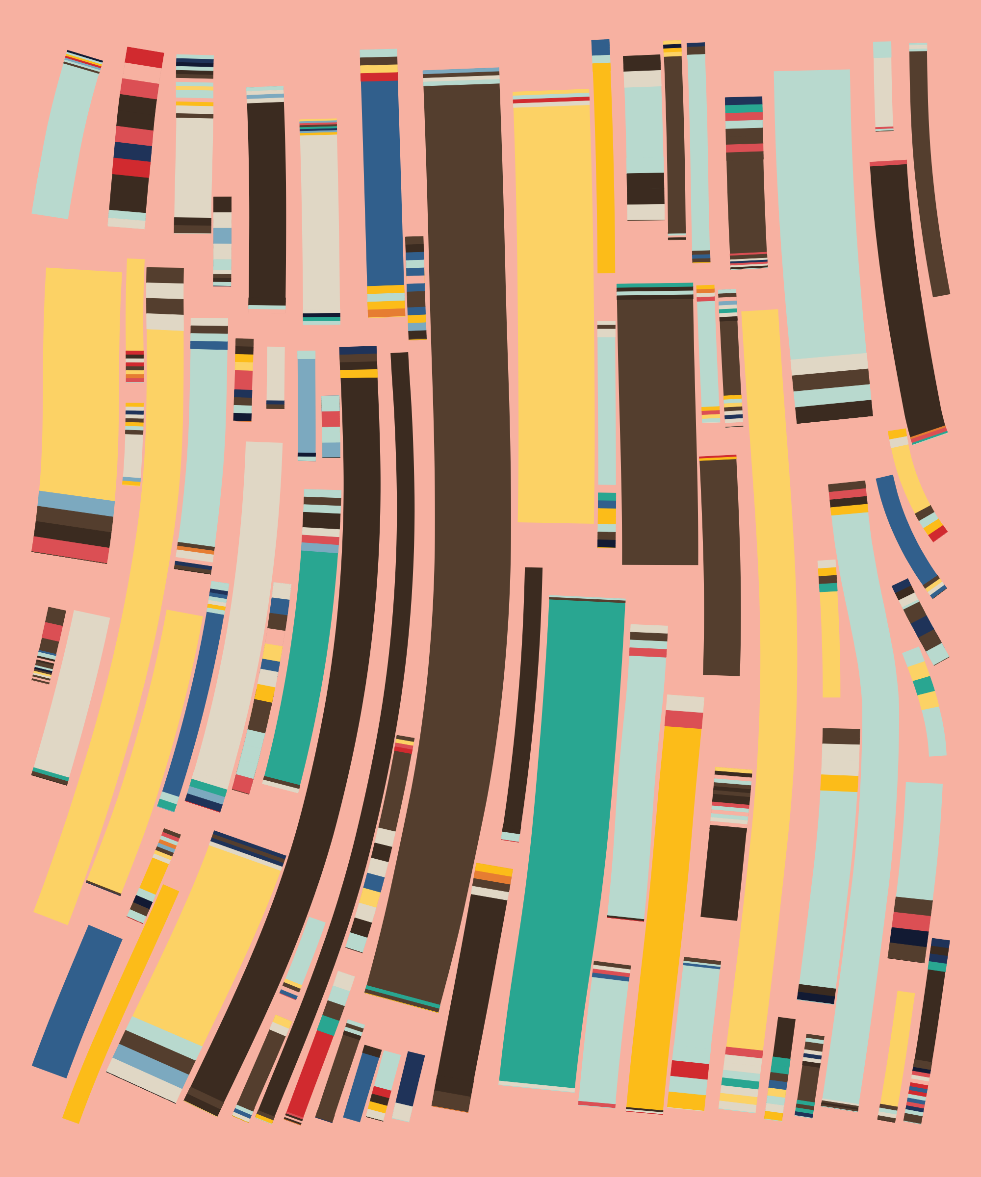 Fidenza is by far my most versatile algorithm to date. Although the program stays focused on structured curves and blocks, the varieties of scale, organization, texture, and color usage it can employ create a wide array of generative possibilities.
