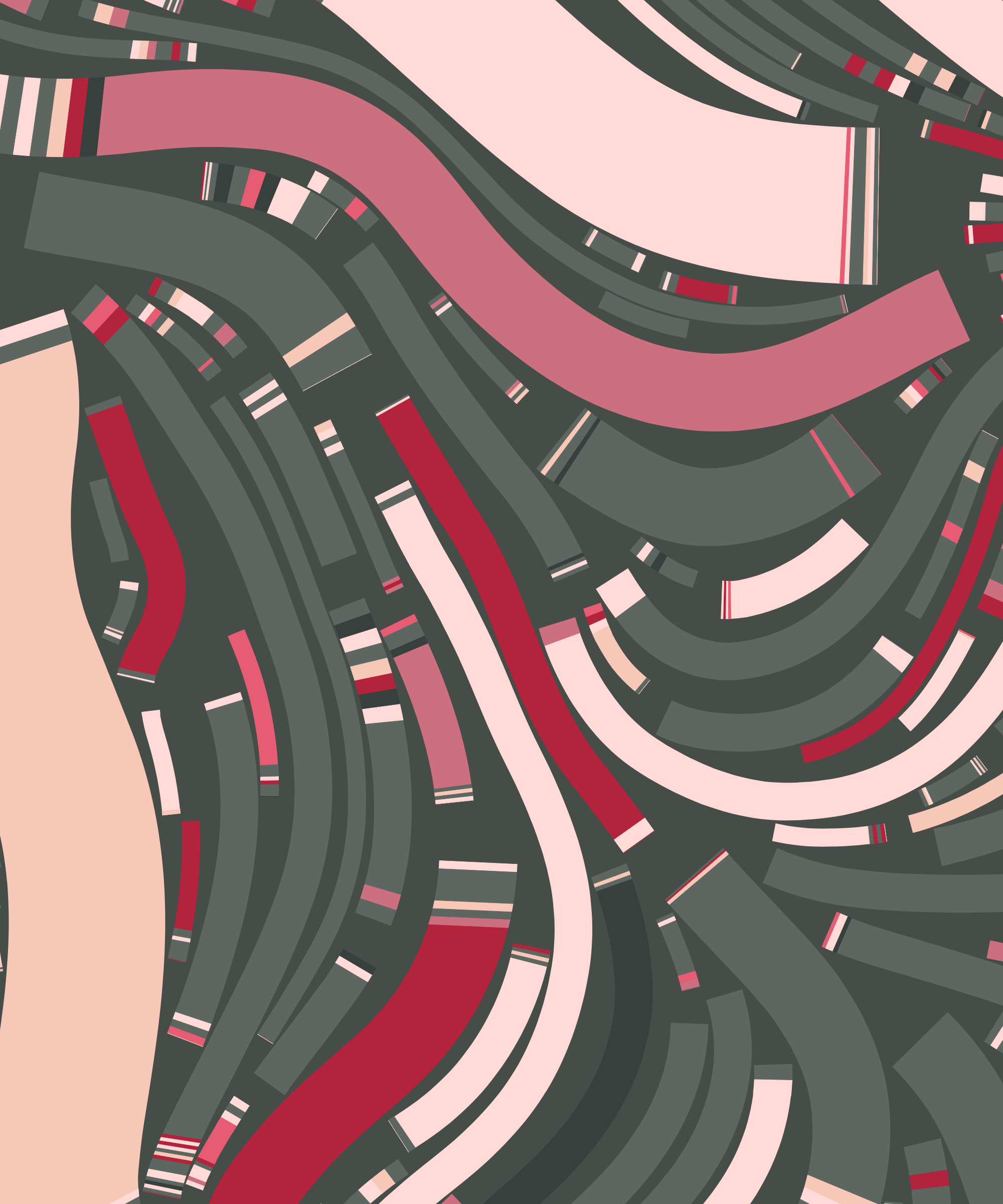 Fidenza is by far my most versatile algorithm to date. Although the program stays focused on structured curves and blocks, the varieties of scale, organization, texture, and color usage it can employ create a wide array of generative possibilities.