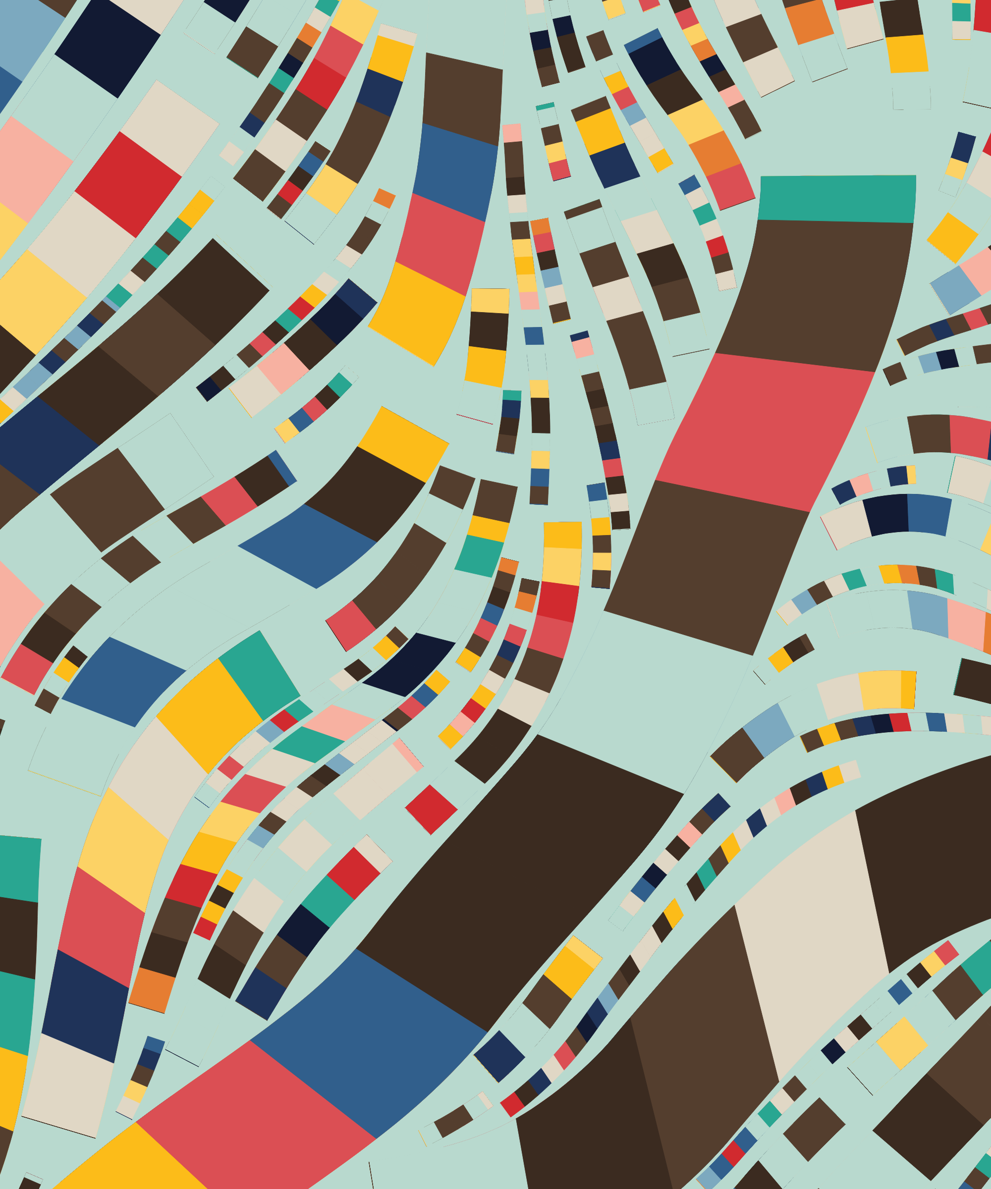 Fidenza is by far my most versatile algorithm to date. Although the program stays focused on structured curves and blocks, the varieties of scale, organization, texture, and color usage it can employ create a wide array of generative possibilities.
