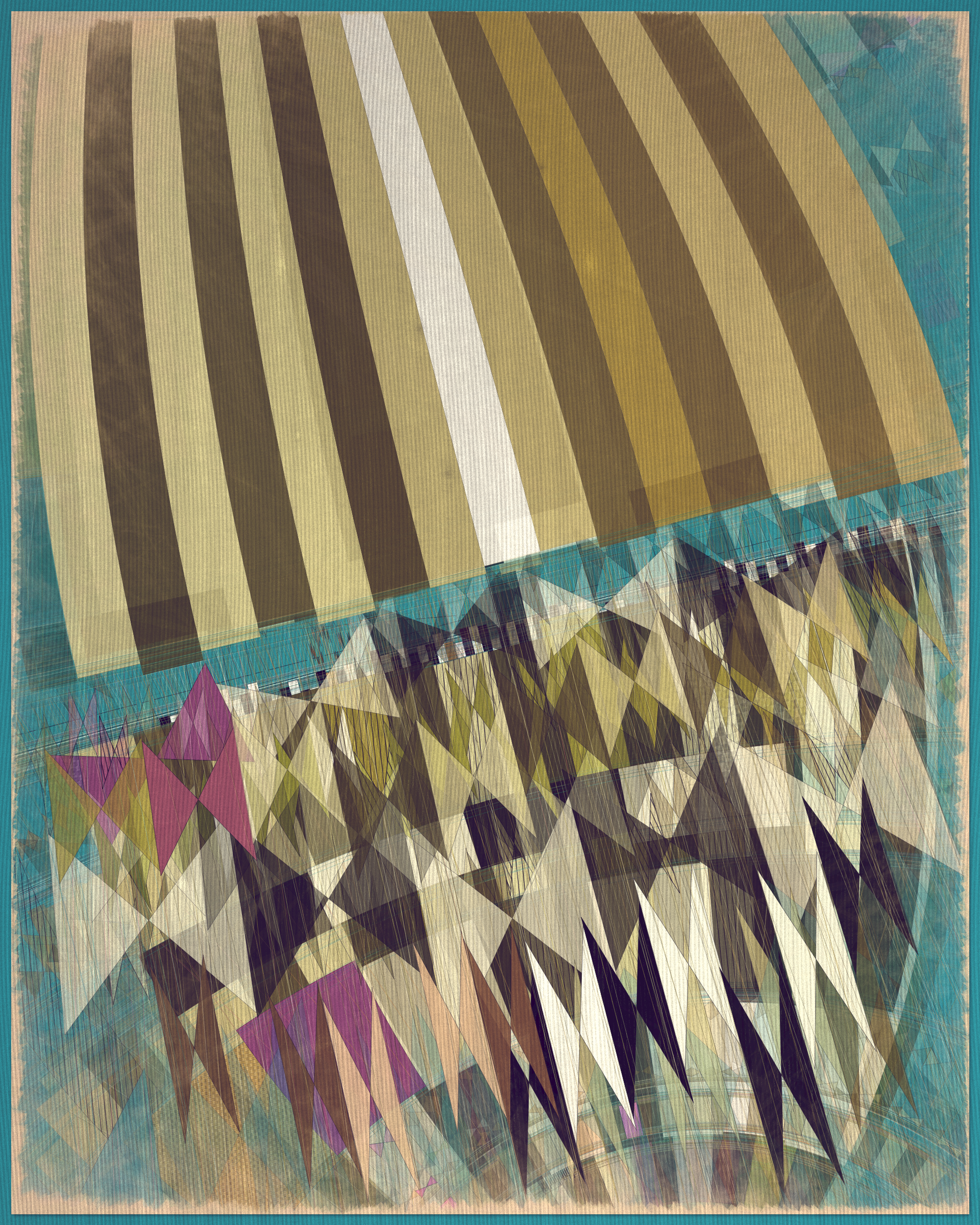 Woven into the very fabric of Fontana is a fully generative solution for creating color expression. This means there is no reliance on preset palettes with every output being an entirely unique color articulation of the color story I want the project to reveal as a whole. Far from being random I attempted to create an approach which produces colors that evoke early 20th Century art and design media. With this intention I wanted outputs to look like they could be working drawing artifacts from this period of time.