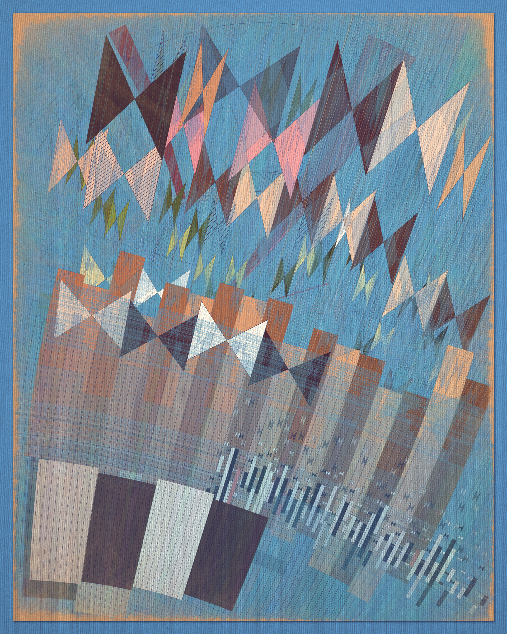 Woven into the very fabric of Fontana is a fully generative solution for creating color expression. This means there is no reliance on preset palettes with every output being an entirely unique color articulation of the color story I want the project to reveal as a whole. Far from being random I attempted to create an approach which produces colors that evoke early 20th Century art and design media. With this intention I wanted outputs to look like they could be working drawing artifacts from this period of time.