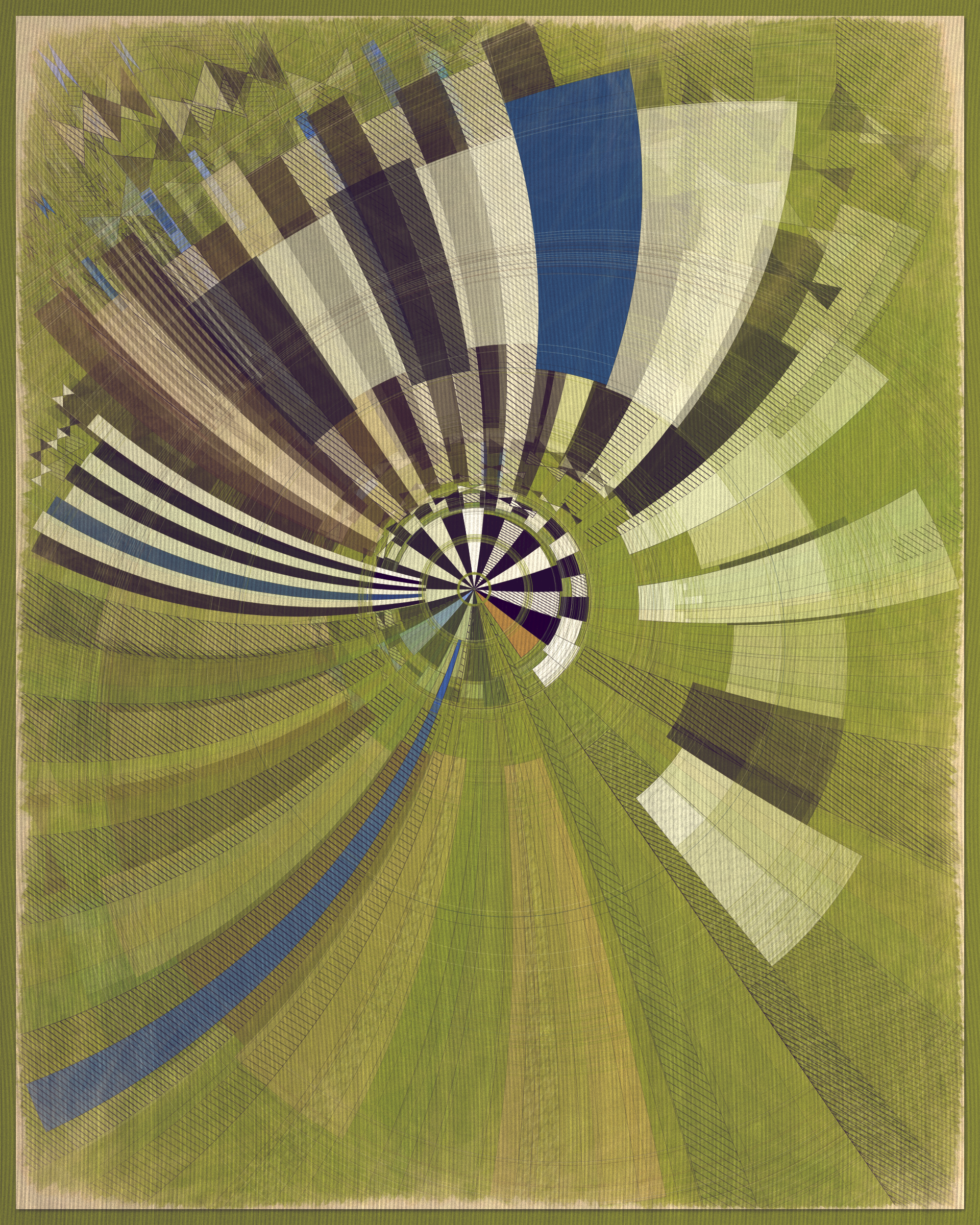 This project is a playful attempt at abstractly capturing the flowing movement of a fountain using precisely drawn elements that evoke a static and considered rendering of a subject that is in constant flux. The visual language is reminiscent of hand-draughted technical drawing, a precise and methodical practice that progresses at a radically different pace to the flowing and capricious movement of water. To increase this tension between dynamic motion and static mechanical process I wanted the surface textures to appear worn and aged like a drawing that has spent its life in the bottom of a mechanics drawer. This process of abrasion and discoloration is occurring on yet another scale of time adding complexity to the references of time passing.