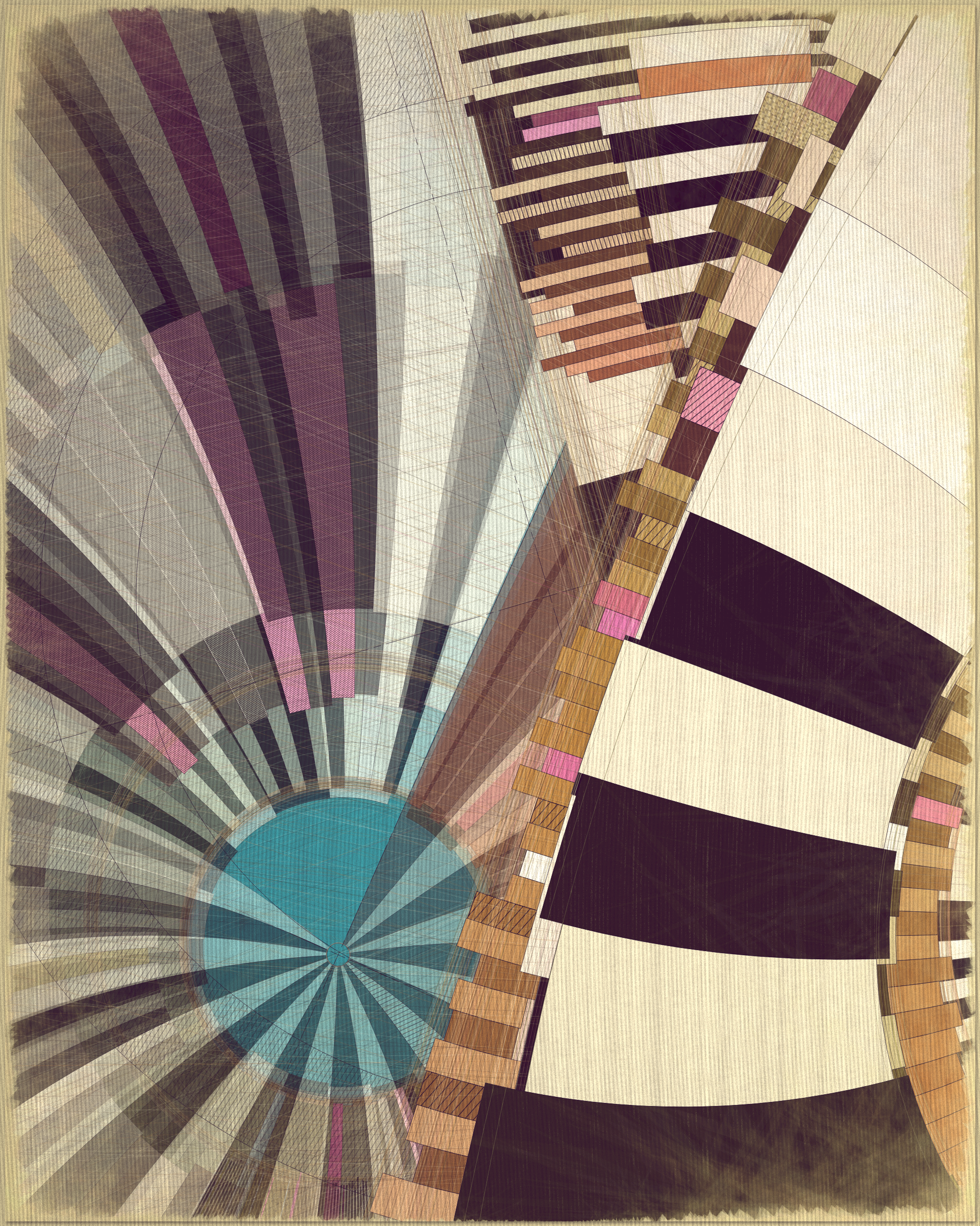 Woven into the very fabric of Fontana is a fully generative solution for creating color expression. This means there is no reliance on preset palettes with every output being an entirely unique color articulation of the color story I want the project to reveal as a whole. Far from being random I attempted to create an approach which produces colors that evoke early 20th Century art and design media. With this intention I wanted outputs to look like they could be working drawing artifacts from this period of time.