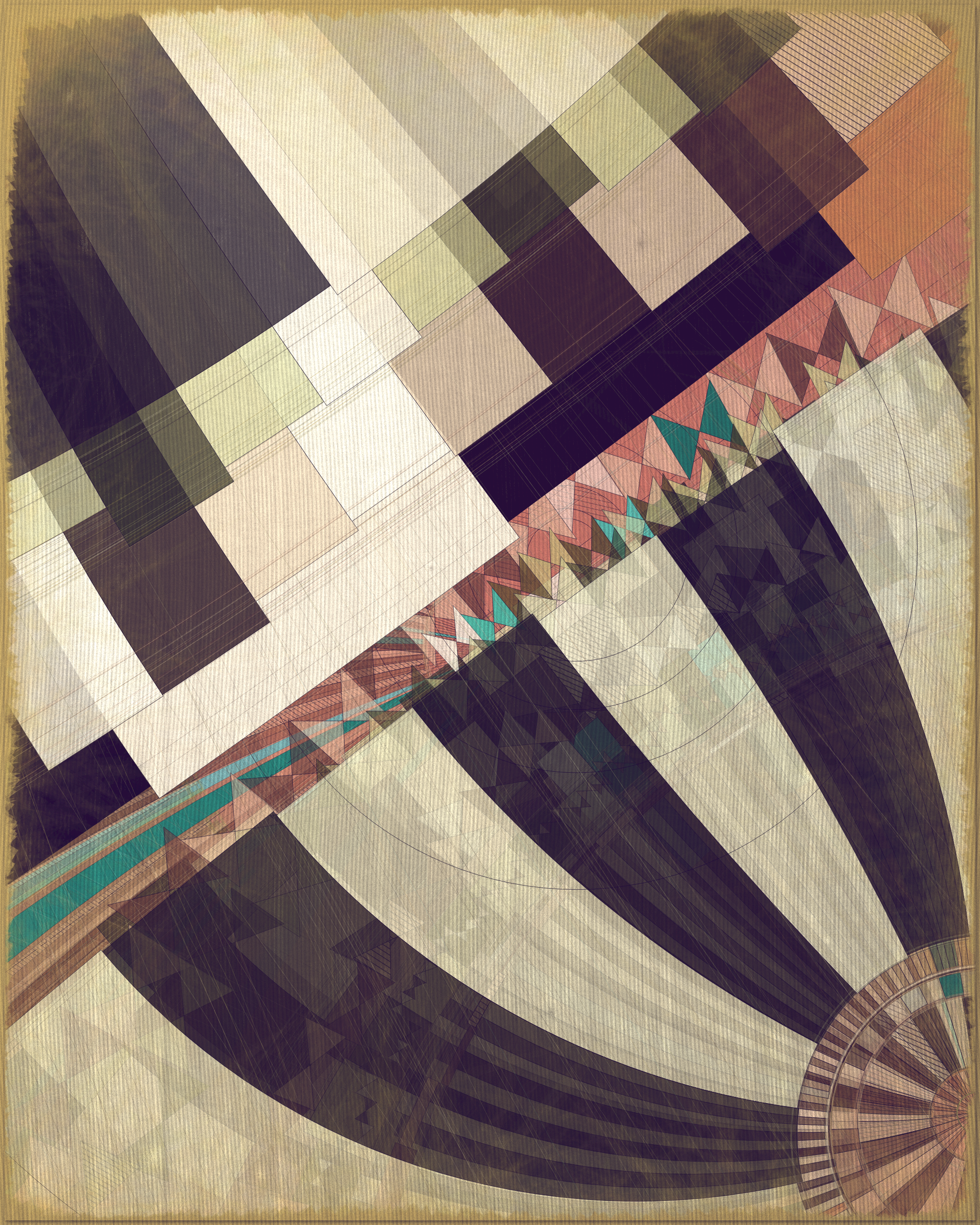 This project is a playful attempt at abstractly capturing the flowing movement of a fountain using precisely drawn elements that evoke a static and considered rendering of a subject that is in constant flux. The visual language is reminiscent of hand-draughted technical drawing, a precise and methodical practice that progresses at a radically different pace to the flowing and capricious movement of water. To increase this tension between dynamic motion and static mechanical process I wanted the surface textures to appear worn and aged like a drawing that has spent its life in the bottom of a mechanics drawer. This process of abrasion and discoloration is occurring on yet another scale of time adding complexity to the references of time passing.