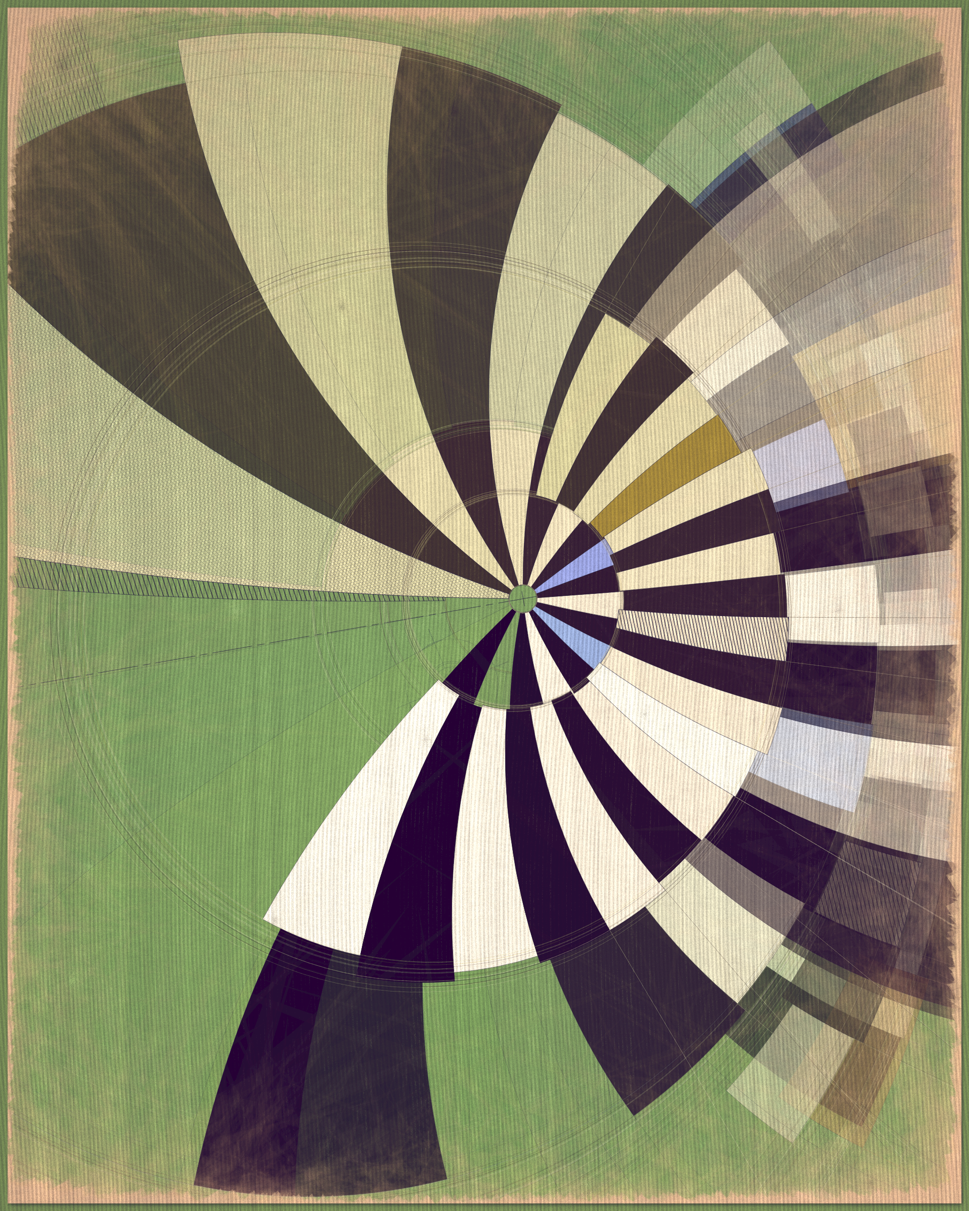 This project is a playful attempt at abstractly capturing the flowing movement of a fountain using precisely drawn elements that evoke a static and considered rendering of a subject that is in constant flux. The visual language is reminiscent of hand-draughted technical drawing, a precise and methodical practice that progresses at a radically different pace to the flowing and capricious movement of water. To increase this tension between dynamic motion and static mechanical process I wanted the surface textures to appear worn and aged like a drawing that has spent its life in the bottom of a mechanics drawer. This process of abrasion and discoloration is occurring on yet another scale of time adding complexity to the references of time passing.