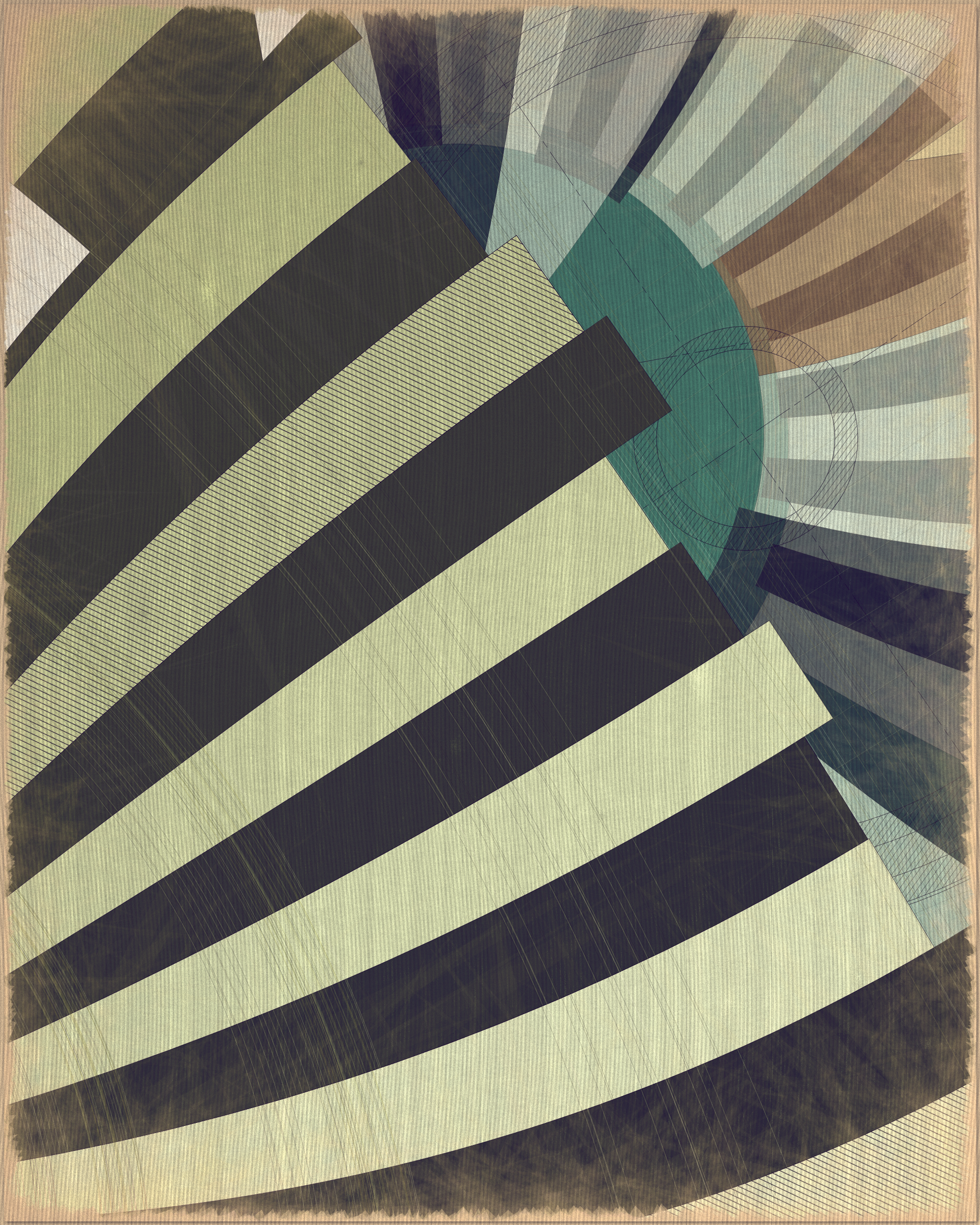 This project is a playful attempt at abstractly capturing the flowing movement of a fountain using precisely drawn elements that evoke a static and considered rendering of a subject that is in constant flux. The visual language is reminiscent of hand-draughted technical drawing, a precise and methodical practice that progresses at a radically different pace to the flowing and capricious movement of water. To increase this tension between dynamic motion and static mechanical process I wanted the surface textures to appear worn and aged like a drawing that has spent its life in the bottom of a mechanics drawer. This process of abrasion and discoloration is occurring on yet another scale of time adding complexity to the references of time passing.