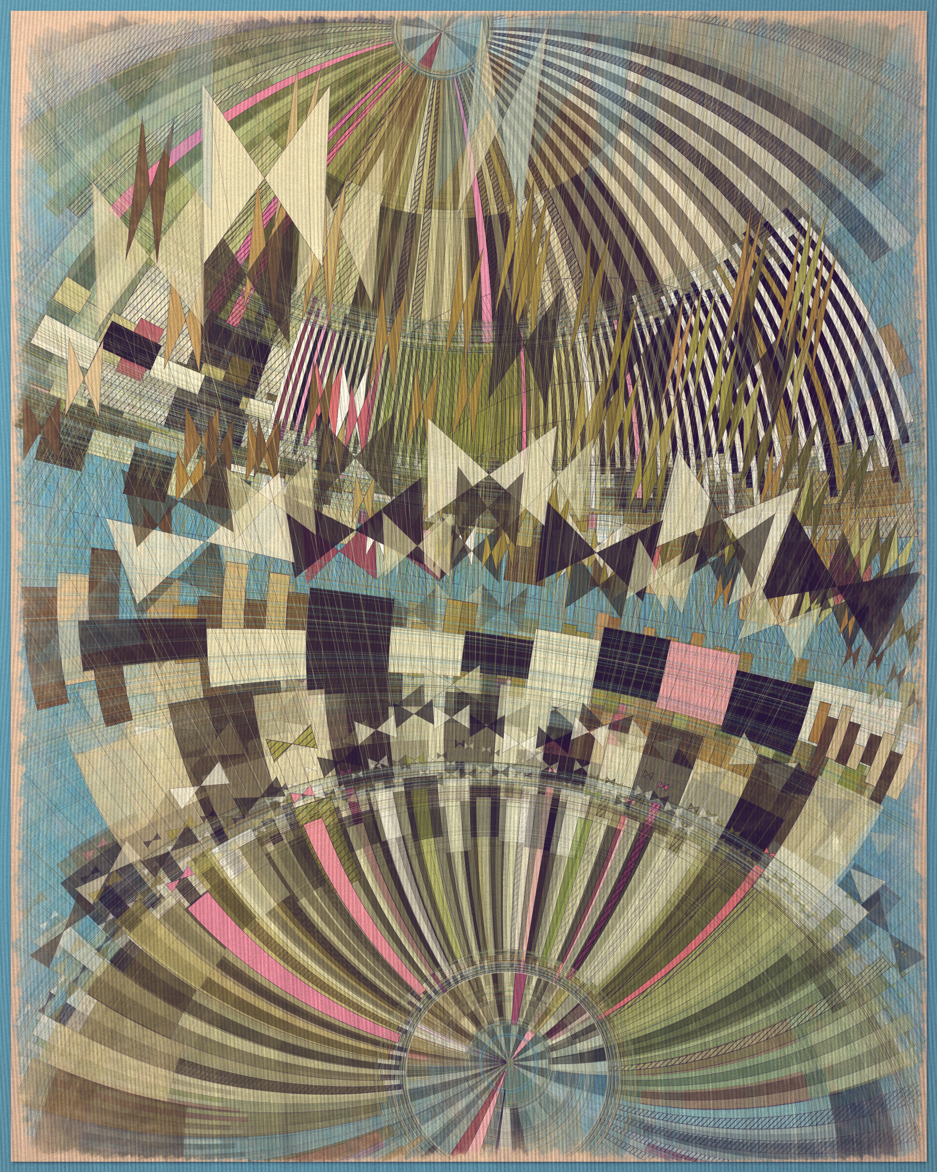 Woven into the very fabric of Fontana is a fully generative solution for creating color expression. This means there is no reliance on preset palettes with every output being an entirely unique color articulation of the color story I want the project to reveal as a whole. Far from being random I attempted to create an approach which produces colors that evoke early 20th Century art and design media. With this intention I wanted outputs to look like they could be working drawing artifacts from this period of time.