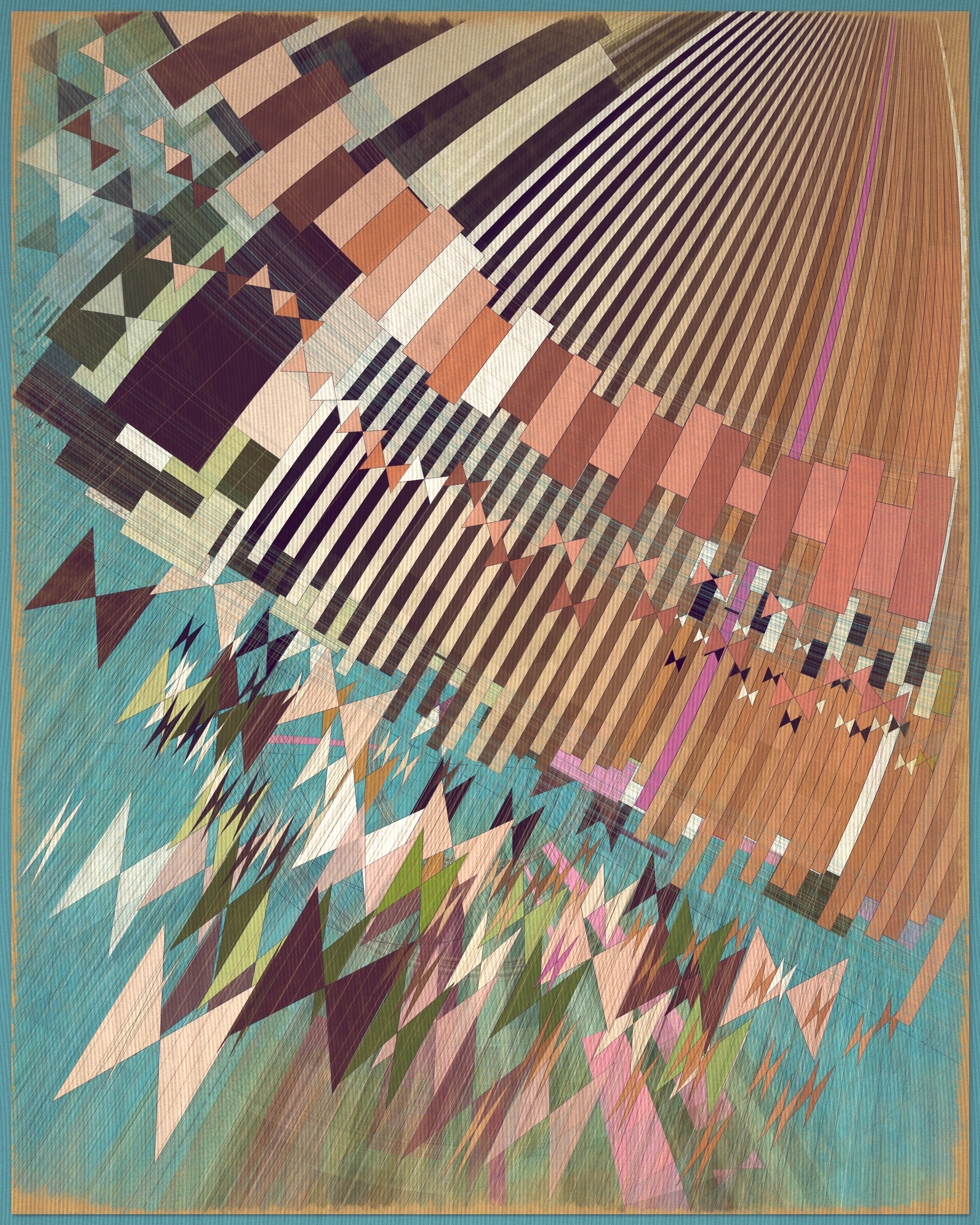 Woven into the very fabric of Fontana is a fully generative solution for creating color expression. This means there is no reliance on preset palettes with every output being an entirely unique color articulation of the color story I want the project to reveal as a whole. Far from being random I attempted to create an approach which produces colors that evoke early 20th Century art and design media. With this intention I wanted outputs to look like they could be working drawing artifacts from this period of time.