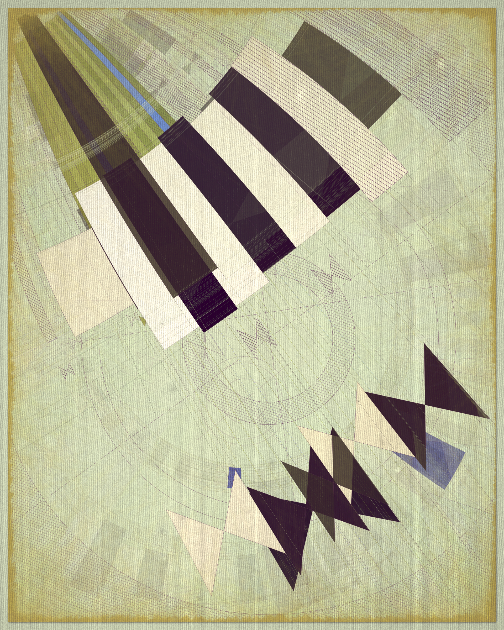 Woven into the very fabric of Fontana is a fully generative solution for creating color expression. This means there is no reliance on preset palettes with every output being an entirely unique color articulation of the color story I want the project to reveal as a whole. Far from being random I attempted to create an approach which produces colors that evoke early 20th Century art and design media. With this intention I wanted outputs to look like they could be working drawing artifacts from this period of time.