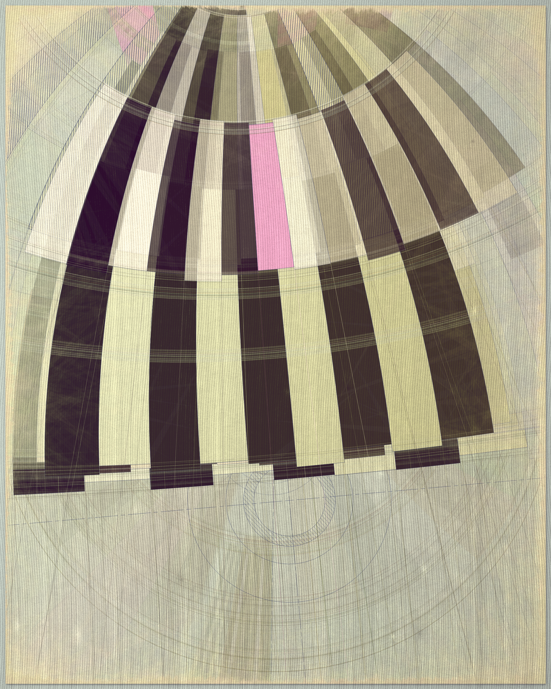 Woven into the very fabric of Fontana is a fully generative solution for creating color expression. This means there is no reliance on preset palettes with every output being an entirely unique color articulation of the color story I want the project to reveal as a whole. Far from being random I attempted to create an approach which produces colors that evoke early 20th Century art and design media. With this intention I wanted outputs to look like they could be working drawing artifacts from this period of time.