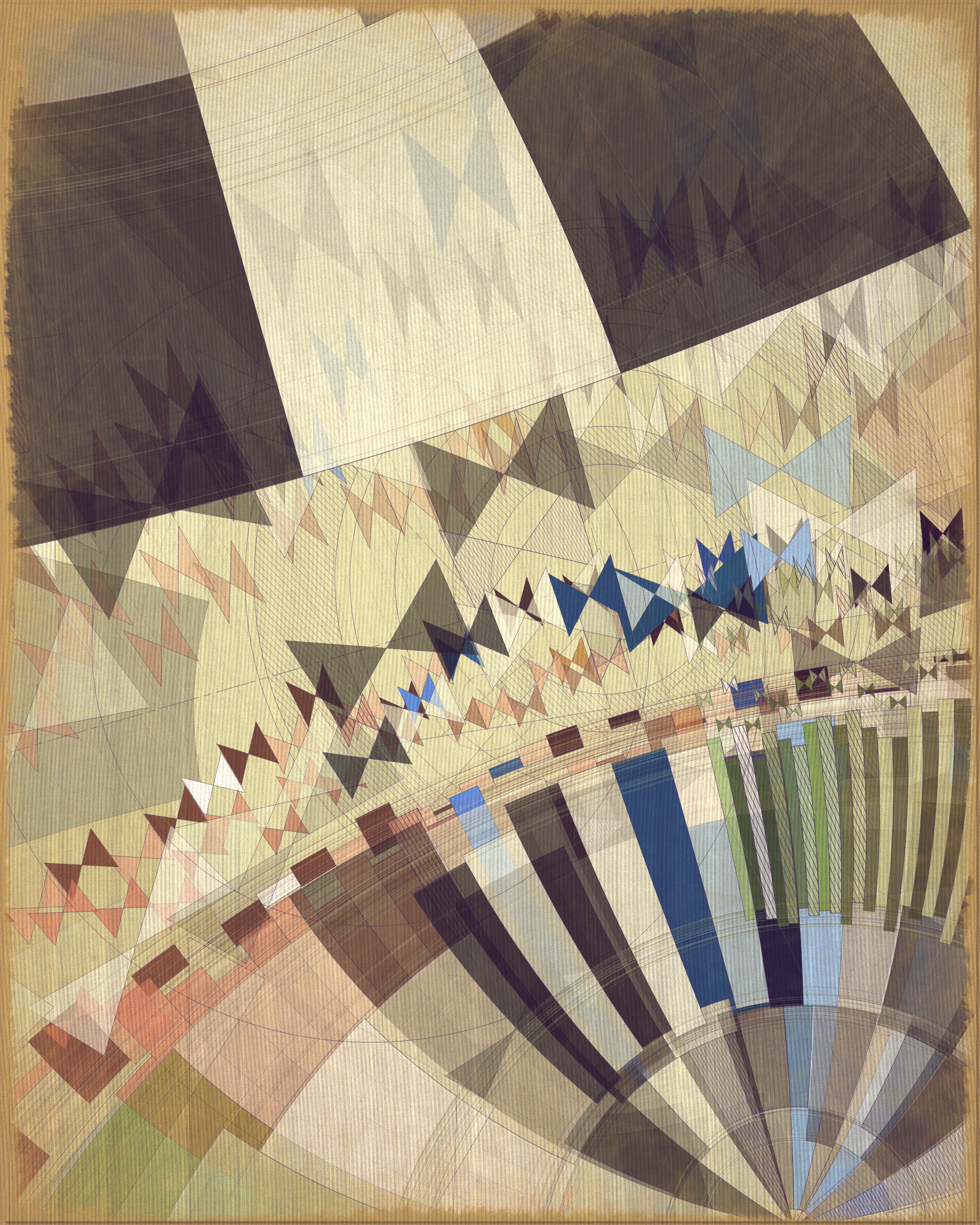 Woven into the very fabric of Fontana is a fully generative solution for creating color expression. This means there is no reliance on preset palettes with every output being an entirely unique color articulation of the color story I want the project to reveal as a whole. Far from being random I attempted to create an approach which produces colors that evoke early 20th Century art and design media. With this intention I wanted outputs to look like they could be working drawing artifacts from this period of time.