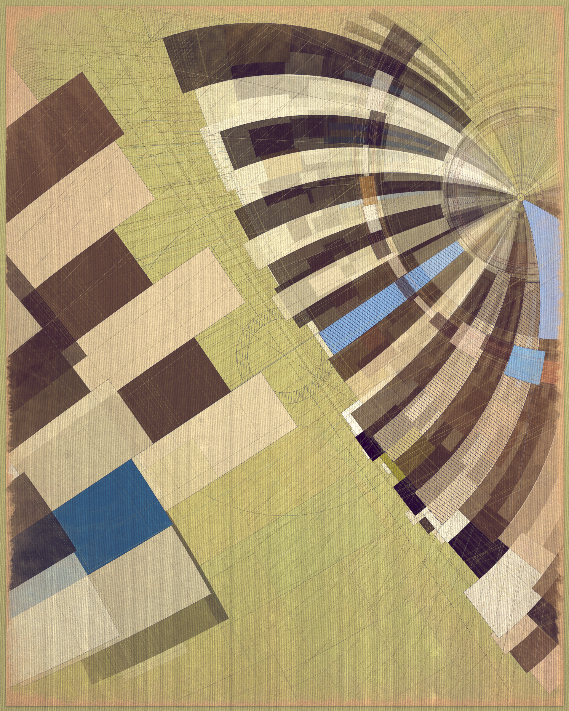 Woven into the very fabric of Fontana is a fully generative solution for creating color expression. This means there is no reliance on preset palettes with every output being an entirely unique color articulation of the color story I want the project to reveal as a whole. Far from being random I attempted to create an approach which produces colors that evoke early 20th Century art and design media. With this intention I wanted outputs to look like they could be working drawing artifacts from this period of time.
