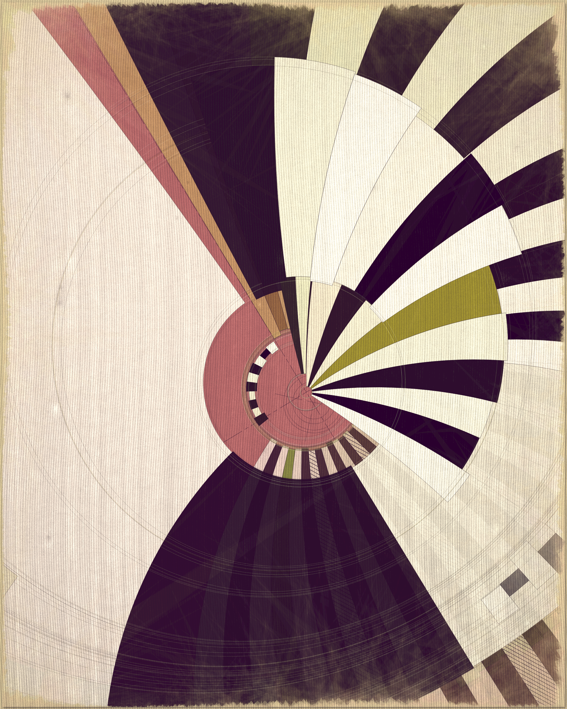 This project is a playful attempt at abstractly capturing the flowing movement of a fountain using precisely drawn elements that evoke a static and considered rendering of a subject that is in constant flux. The visual language is reminiscent of hand-draughted technical drawing, a precise and methodical practice that progresses at a radically different pace to the flowing and capricious movement of water. To increase this tension between dynamic motion and static mechanical process I wanted the surface textures to appear worn and aged like a drawing that has spent its life in the bottom of a mechanics drawer. This process of abrasion and discoloration is occurring on yet another scale of time adding complexity to the references of time passing.