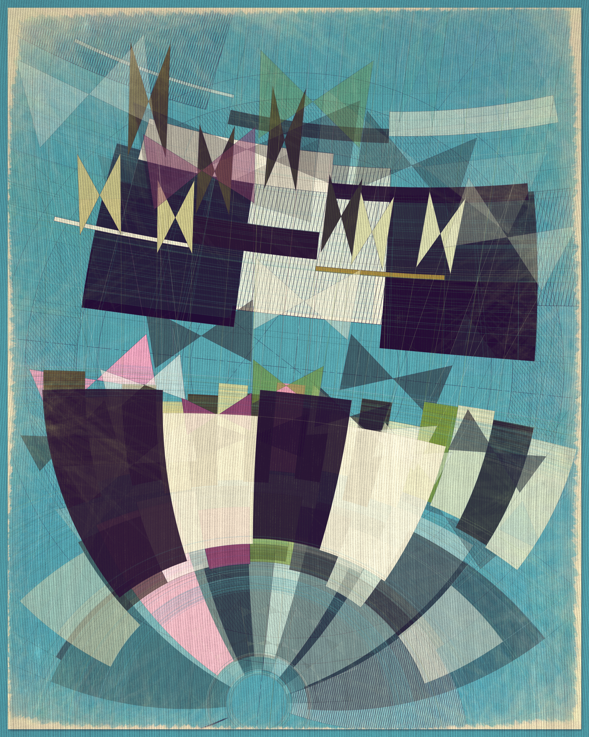Woven into the very fabric of Fontana is a fully generative solution for creating color expression. This means there is no reliance on preset palettes with every output being an entirely unique color articulation of the color story I want the project to reveal as a whole. Far from being random I attempted to create an approach which produces colors that evoke early 20th Century art and design media. With this intention I wanted outputs to look like they could be working drawing artifacts from this period of time.