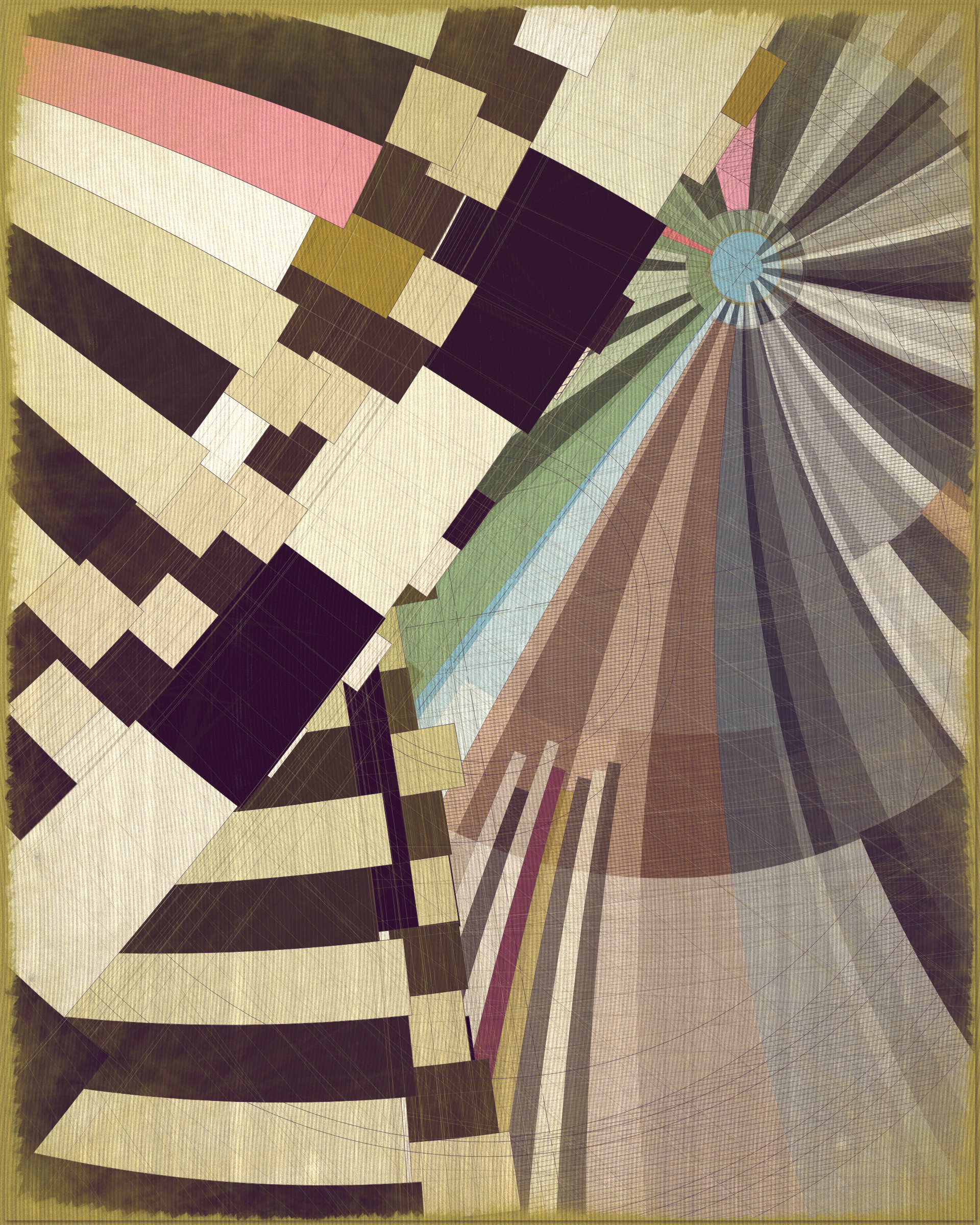 Woven into the very fabric of Fontana is a fully generative solution for creating color expression. This means there is no reliance on preset palettes with every output being an entirely unique color articulation of the color story I want the project to reveal as a whole. Far from being random I attempted to create an approach which produces colors that evoke early 20th Century art and design media. With this intention I wanted outputs to look like they could be working drawing artifacts from this period of time.