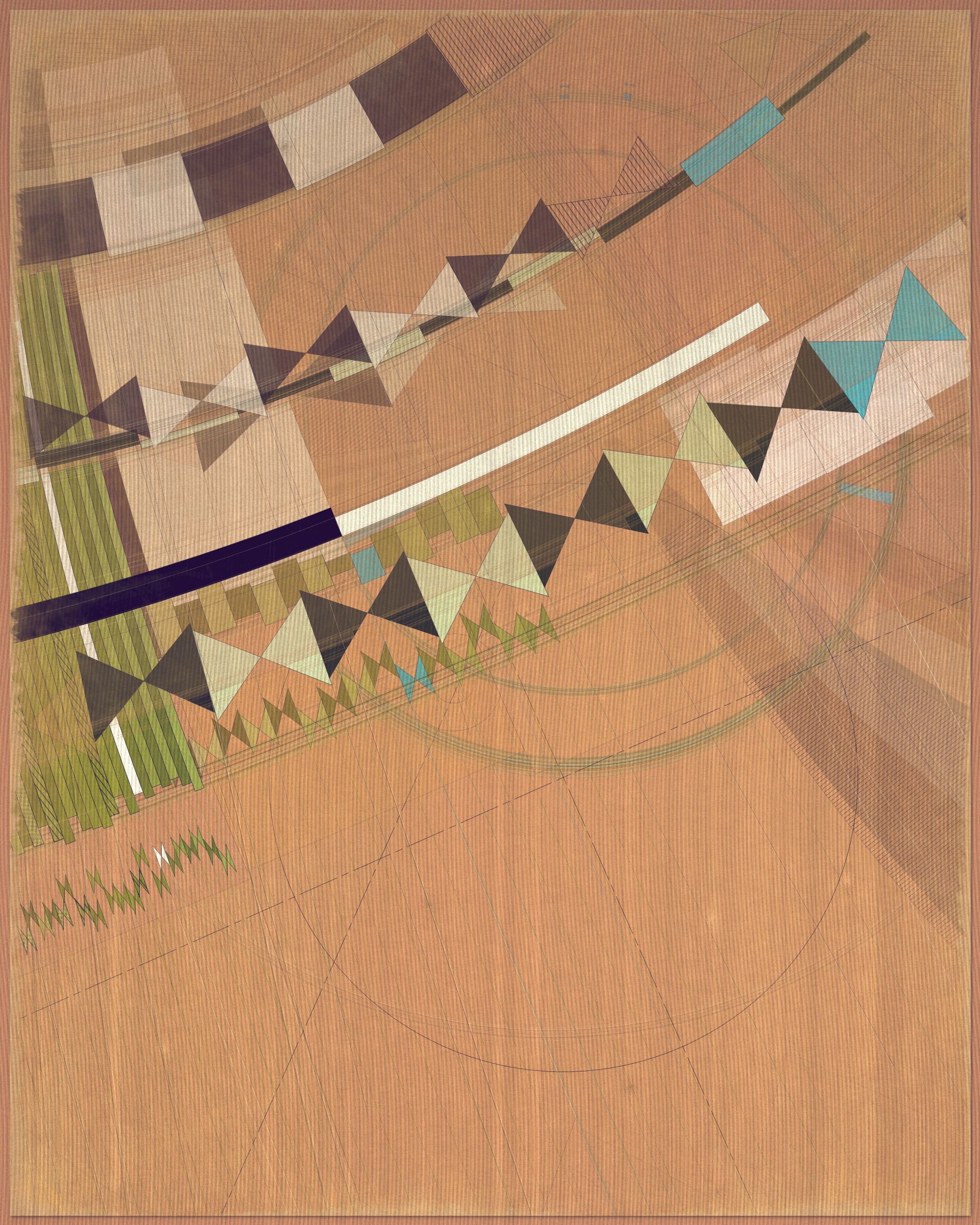 This project is a playful attempt at abstractly capturing the flowing movement of a fountain using precisely drawn elements that evoke a static and considered rendering of a subject that is in constant flux. The visual language is reminiscent of hand-draughted technical drawing, a precise and methodical practice that progresses at a radically different pace to the flowing and capricious movement of water. To increase this tension between dynamic motion and static mechanical process I wanted the surface textures to appear worn and aged like a drawing that has spent its life in the bottom of a mechanics drawer. This process of abrasion and discoloration is occurring on yet another scale of time adding complexity to the references of time passing.