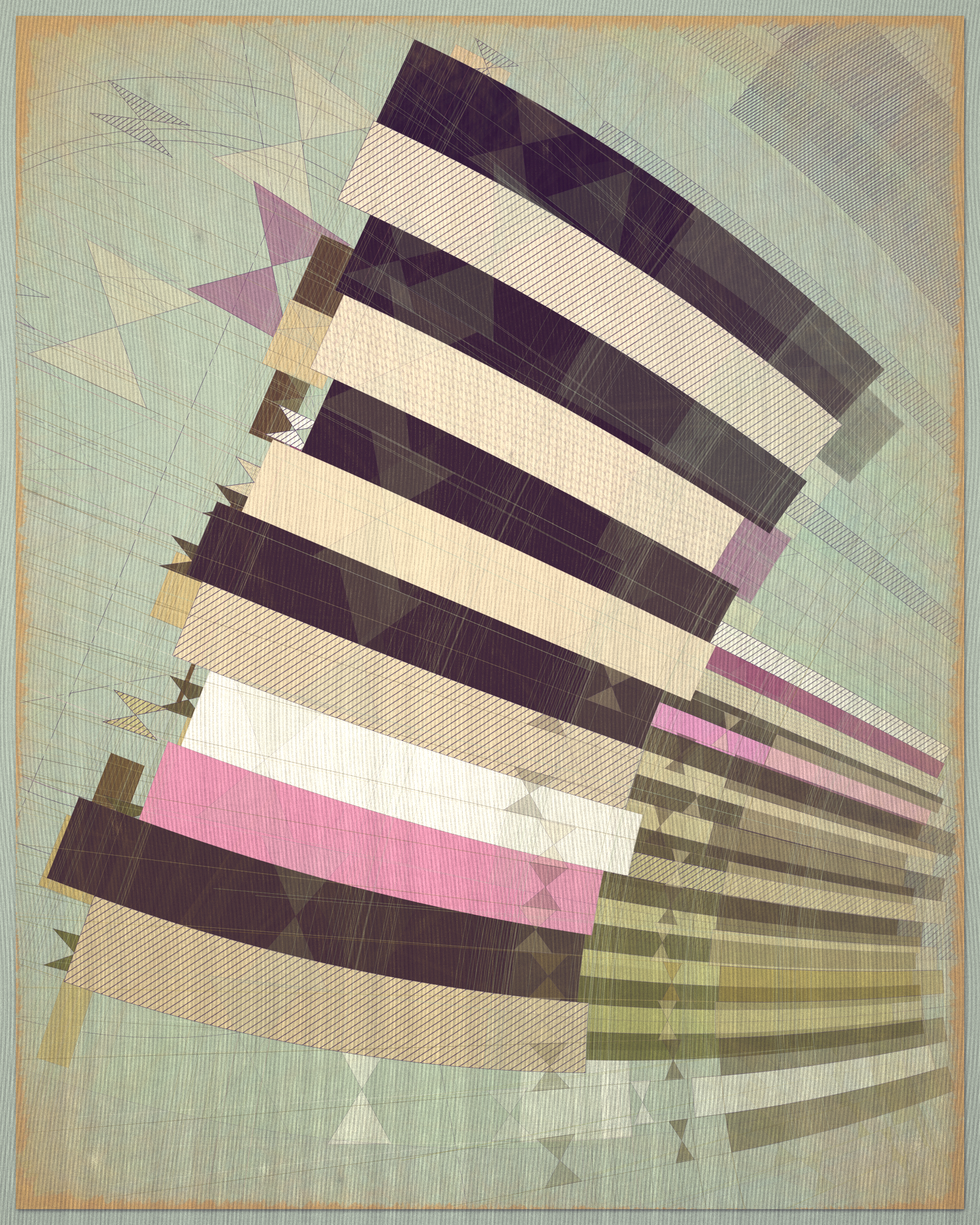 Woven into the very fabric of Fontana is a fully generative solution for creating color expression. This means there is no reliance on preset palettes with every output being an entirely unique color articulation of the color story I want the project to reveal as a whole. Far from being random I attempted to create an approach which produces colors that evoke early 20th Century art and design media. With this intention I wanted outputs to look like they could be working drawing artifacts from this period of time.