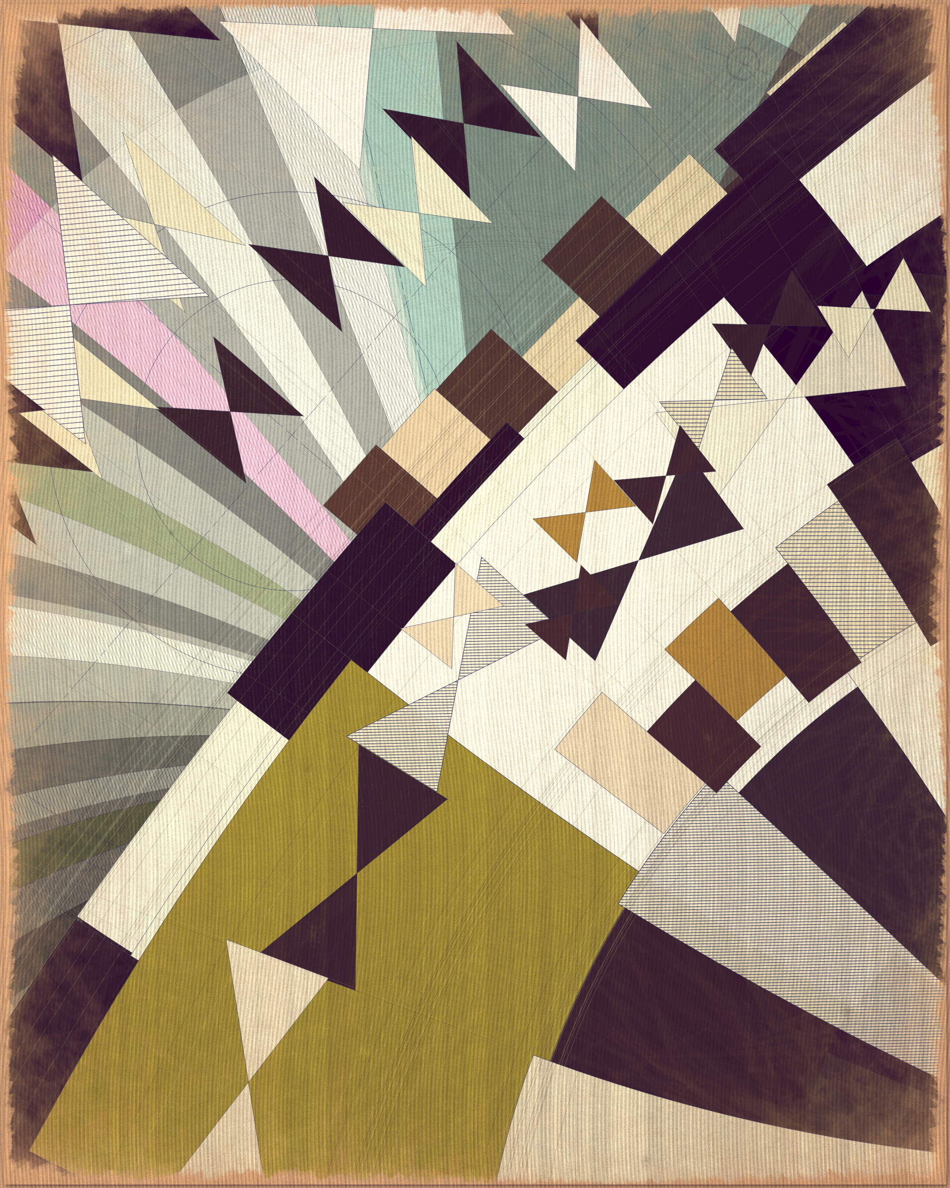 This project is a playful attempt at abstractly capturing the flowing movement of a fountain using precisely drawn elements that evoke a static and considered rendering of a subject that is in constant flux. The visual language is reminiscent of hand-draughted technical drawing, a precise and methodical practice that progresses at a radically different pace to the flowing and capricious movement of water. To increase this tension between dynamic motion and static mechanical process I wanted the surface textures to appear worn and aged like a drawing that has spent its life in the bottom of a mechanics drawer. This process of abrasion and discoloration is occurring on yet another scale of time adding complexity to the references of time passing.