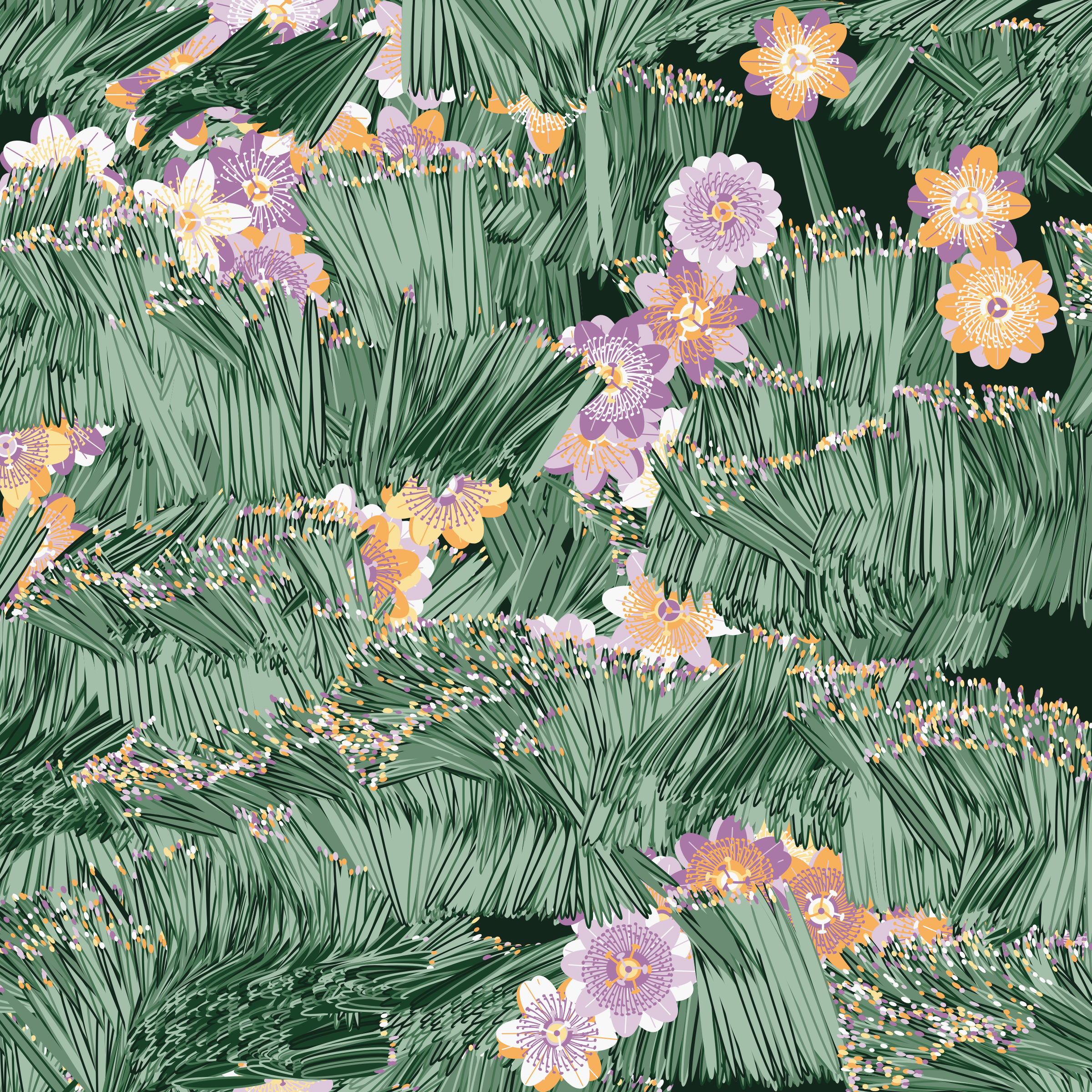 “Fragments of an infinite field” is a compositional system in which an idealized plant species is generated and arranged in a potentially infinite field of foliage. The main environmental parameter of the composition is the determination of a season of the year. The season determines the landscape’s colors and defines specific phenomena for each of them, such as rain in summer, snow in winter, petals falling in autumn, and pollen in spring. The flower has several possible variables, which can be macro aspects, affecting the entire population of the species, or micro, affecting each individual of the species differently. For example, the number of petals can be equal in all individuals or not. The number of filaments and other structures of the flower can undergo minor deviations, generating small mutations. The confusion between the figure (plant) and the background (earth, sky, other natural elements) is fascinating from a compositional point of view. The background colors are, most of the time, colors present in the figures, often breaking the boundary between them and, therefore, generating chromatic masses. In this project I also intend to research the following question: How to create parameters that resemble a living organism's growth? In this sense, the project approaches digital morphogenesis and the development of procedural organisms.