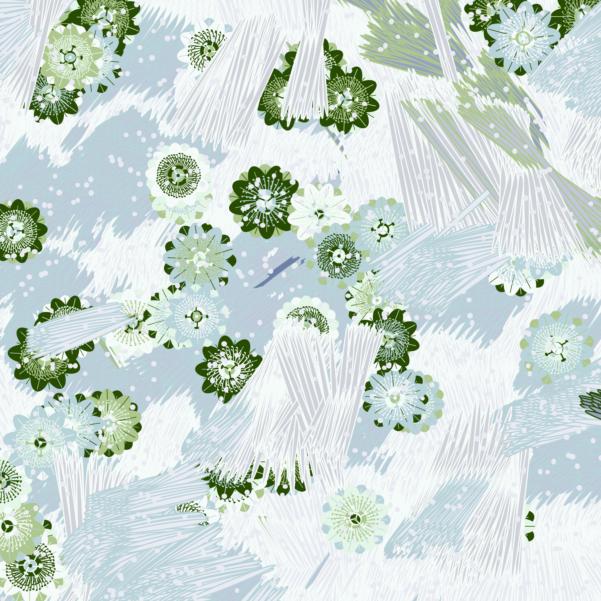 “Fragments of an infinite field” is a compositional system in which an idealized plant species is generated and arranged in a potentially infinite field of foliage. The main environmental parameter of the composition is the determination of a season of the year. The season determines the landscape’s colors and defines specific phenomena for each of them, such as rain in summer, snow in winter, petals falling in autumn, and pollen in spring. The flower has several possible variables, which can be macro aspects, affecting the entire population of the species, or micro, affecting each individual of the species differently. For example, the number of petals can be equal in all individuals or not. The number of filaments and other structures of the flower can undergo minor deviations, generating small mutations. The confusion between the figure (plant) and the background (earth, sky, other natural elements) is fascinating from a compositional point of view. The background colors are, most of the time, colors present in the figures, often breaking the boundary between them and, therefore, generating chromatic masses. In this project I also intend to research the following question: How to create parameters that resemble a living organism's growth? In this sense, the project approaches digital morphogenesis and the development of procedural organisms.