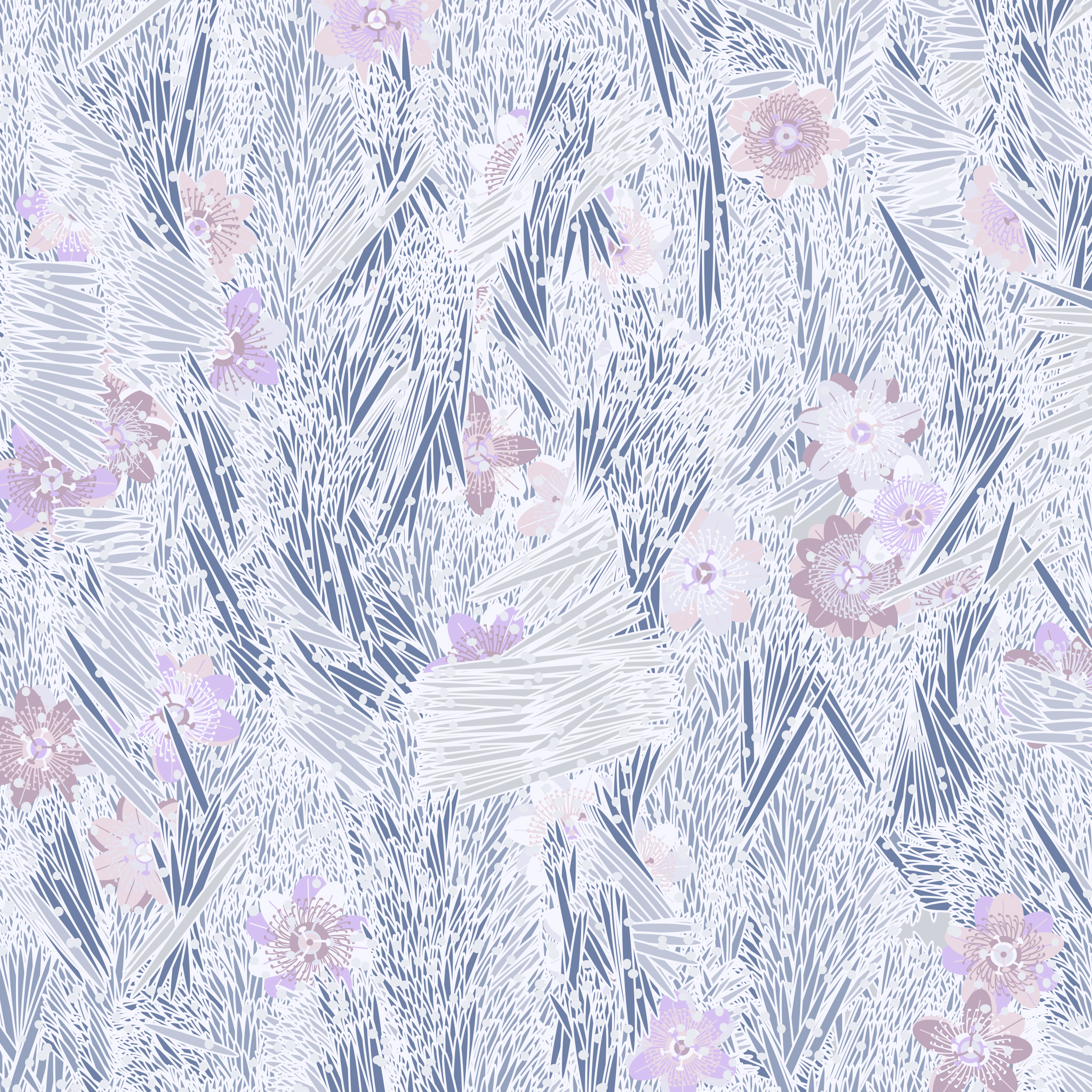 “Fragments of an infinite field” is a compositional system in which an idealized plant species is generated and arranged in a potentially infinite field of foliage. The main environmental parameter of the composition is the determination of a season of the year. The season determines the landscape’s colors and defines specific phenomena for each of them, such as rain in summer, snow in winter, petals falling in autumn, and pollen in spring. The flower has several possible variables, which can be macro aspects, affecting the entire population of the species, or micro, affecting each individual of the species differently. For example, the number of petals can be equal in all individuals or not. The number of filaments and other structures of the flower can undergo minor deviations, generating small mutations. The confusion between the figure (plant) and the background (earth, sky, other natural elements) is fascinating from a compositional point of view. The background colors are, most of the time, colors present in the figures, often breaking the boundary between them and, therefore, generating chromatic masses. In this project I also intend to research the following question: How to create parameters that resemble a living organism's growth? In this sense, the project approaches digital morphogenesis and the development of procedural organisms.