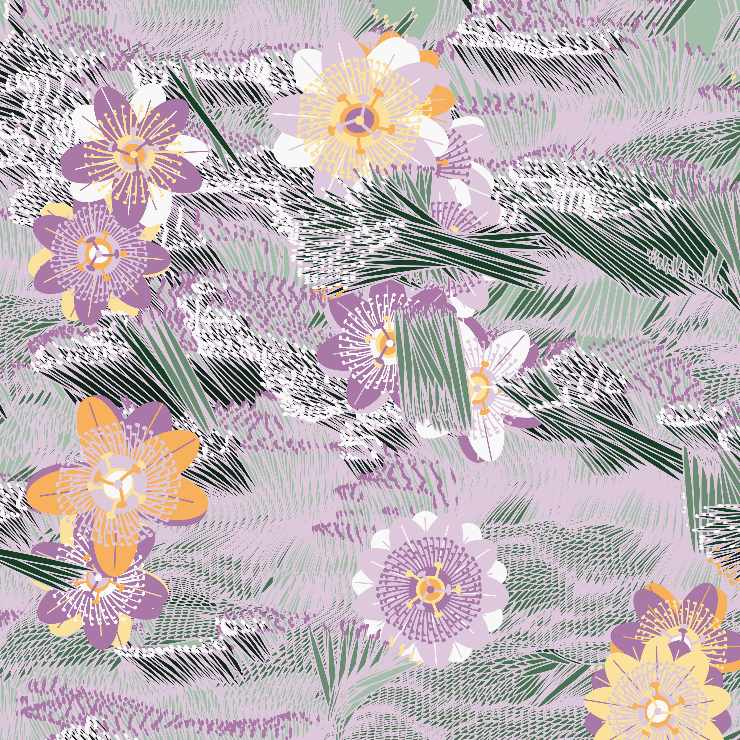 “Fragments of an infinite field” is a compositional system in which an idealized plant species is generated and arranged in a potentially infinite field of foliage. The main environmental parameter of the composition is the determination of a season of the year. The season determines the landscape’s colors and defines specific phenomena for each of them, such as rain in summer, snow in winter, petals falling in autumn, and pollen in spring. The flower has several possible variables, which can be macro aspects, affecting the entire population of the species, or micro, affecting each individual of the species differently. For example, the number of petals can be equal in all individuals or not. The number of filaments and other structures of the flower can undergo minor deviations, generating small mutations. The confusion between the figure (plant) and the background (earth, sky, other natural elements) is fascinating from a compositional point of view. The background colors are, most of the time, colors present in the figures, often breaking the boundary between them and, therefore, generating chromatic masses. In this project I also intend to research the following question: How to create parameters that resemble a living organism's growth? In this sense, the project approaches digital morphogenesis and the development of procedural organisms.