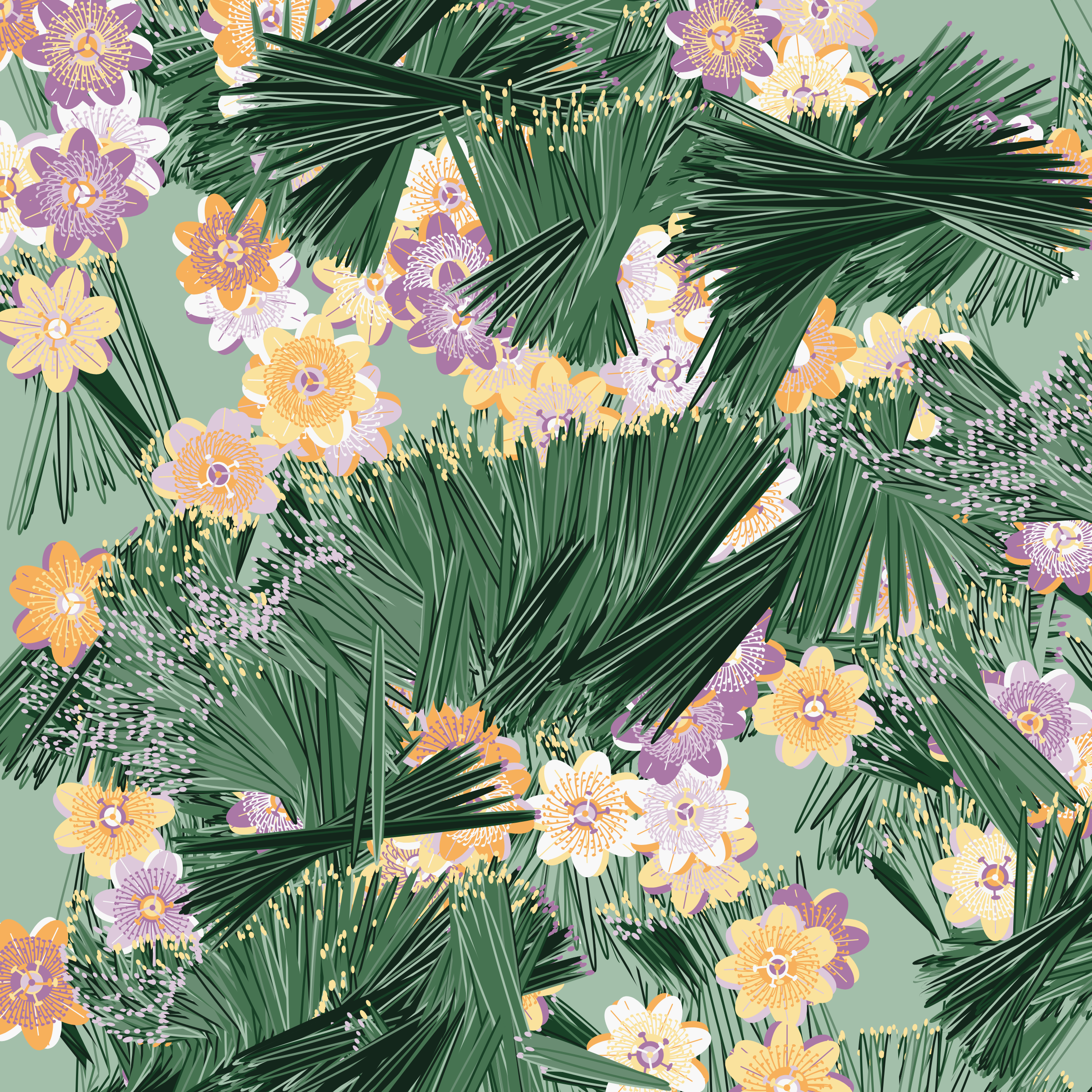 “Fragments of an infinite field” is a compositional system in which an idealized plant species is generated and arranged in a potentially infinite field of foliage. The main environmental parameter of the composition is the determination of a season of the year. The season determines the landscape’s colors and defines specific phenomena for each of them, such as rain in summer, snow in winter, petals falling in autumn, and pollen in spring. The flower has several possible variables, which can be macro aspects, affecting the entire population of the species, or micro, affecting each individual of the species differently. For example, the number of petals can be equal in all individuals or not. The number of filaments and other structures of the flower can undergo minor deviations, generating small mutations. The confusion between the figure (plant) and the background (earth, sky, other natural elements) is fascinating from a compositional point of view. The background colors are, most of the time, colors present in the figures, often breaking the boundary between them and, therefore, generating chromatic masses. In this project I also intend to research the following question: How to create parameters that resemble a living organism's growth? In this sense, the project approaches digital morphogenesis and the development of procedural organisms.