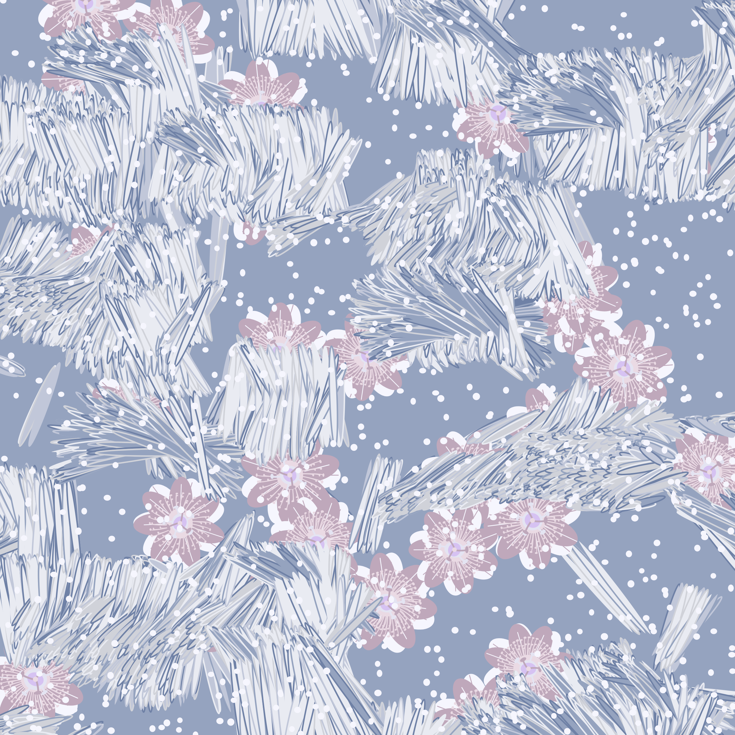 “Fragments of an infinite field” is a compositional system in which an idealized plant species is generated and arranged in a potentially infinite field of foliage. The main environmental parameter of the composition is the determination of a season of the year. The season determines the landscape’s colors and defines specific phenomena for each of them, such as rain in summer, snow in winter, petals falling in autumn, and pollen in spring. The flower has several possible variables, which can be macro aspects, affecting the entire population of the species, or micro, affecting each individual of the species differently. For example, the number of petals can be equal in all individuals or not. The number of filaments and other structures of the flower can undergo minor deviations, generating small mutations. The confusion between the figure (plant) and the background (earth, sky, other natural elements) is fascinating from a compositional point of view. The background colors are, most of the time, colors present in the figures, often breaking the boundary between them and, therefore, generating chromatic masses. In this project I also intend to research the following question: How to create parameters that resemble a living organism's growth? In this sense, the project approaches digital morphogenesis and the development of procedural organisms.