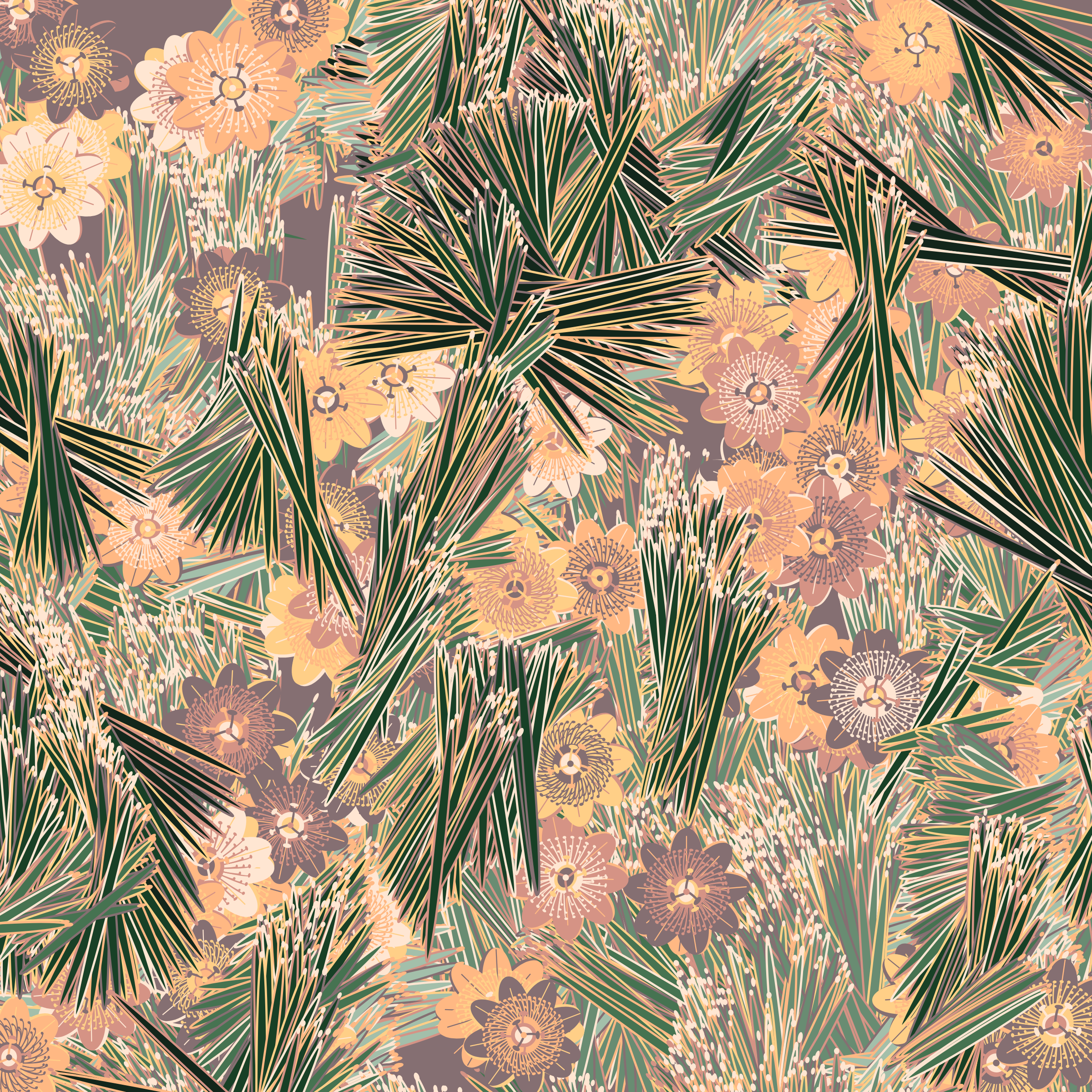 “Fragments of an infinite field” is a compositional system in which an idealized plant species is generated and arranged in a potentially infinite field of foliage. The main environmental parameter of the composition is the determination of a season of the year. The season determines the landscape’s colors and defines specific phenomena for each of them, such as rain in summer, snow in winter, petals falling in autumn, and pollen in spring. The flower has several possible variables, which can be macro aspects, affecting the entire population of the species, or micro, affecting each individual of the species differently. For example, the number of petals can be equal in all individuals or not. The number of filaments and other structures of the flower can undergo minor deviations, generating small mutations. The confusion between the figure (plant) and the background (earth, sky, other natural elements) is fascinating from a compositional point of view. The background colors are, most of the time, colors present in the figures, often breaking the boundary between them and, therefore, generating chromatic masses. In this project I also intend to research the following question: How to create parameters that resemble a living organism's growth? In this sense, the project approaches digital morphogenesis and the development of procedural organisms.