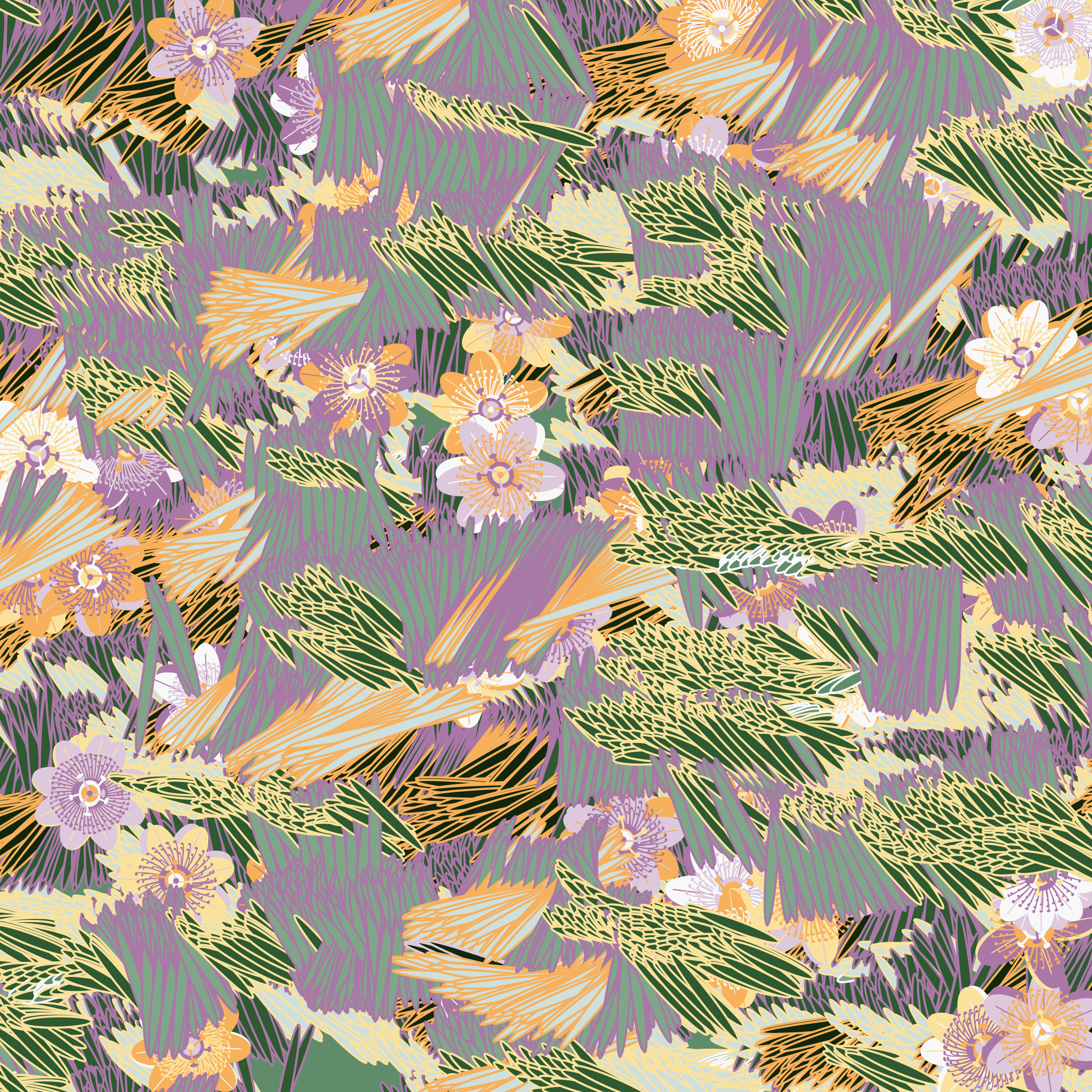“Fragments of an infinite field” is a compositional system in which an idealized plant species is generated and arranged in a potentially infinite field of foliage. The main environmental parameter of the composition is the determination of a season of the year. The season determines the landscape’s colors and defines specific phenomena for each of them, such as rain in summer, snow in winter, petals falling in autumn, and pollen in spring. The flower has several possible variables, which can be macro aspects, affecting the entire population of the species, or micro, affecting each individual of the species differently. For example, the number of petals can be equal in all individuals or not. The number of filaments and other structures of the flower can undergo minor deviations, generating small mutations. The confusion between the figure (plant) and the background (earth, sky, other natural elements) is fascinating from a compositional point of view. The background colors are, most of the time, colors present in the figures, often breaking the boundary between them and, therefore, generating chromatic masses. In this project I also intend to research the following question: How to create parameters that resemble a living organism's growth? In this sense, the project approaches digital morphogenesis and the development of procedural organisms.