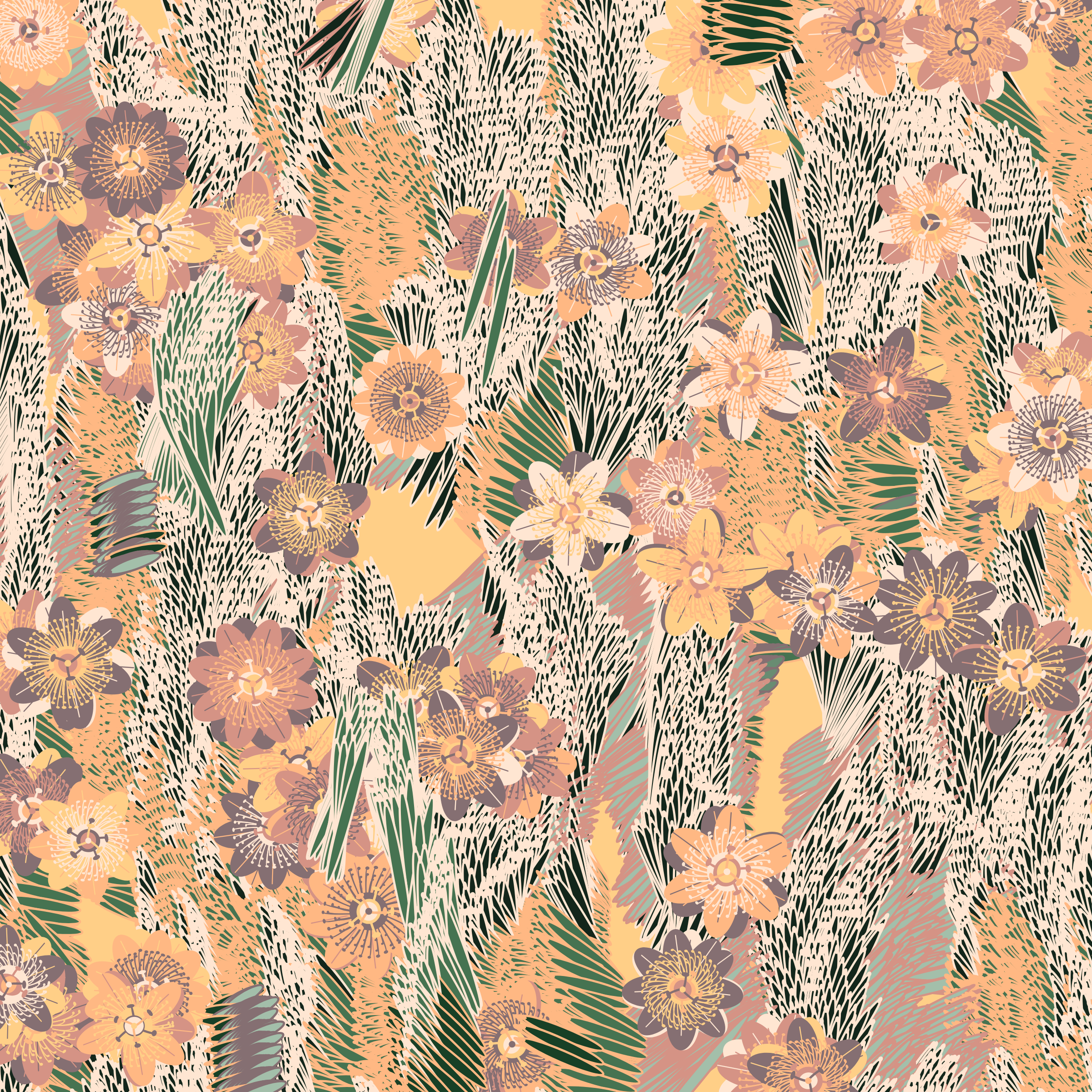 “Fragments of an infinite field” is a compositional system in which an idealized plant species is generated and arranged in a potentially infinite field of foliage. The main environmental parameter of the composition is the determination of a season of the year. The season determines the landscape’s colors and defines specific phenomena for each of them, such as rain in summer, snow in winter, petals falling in autumn, and pollen in spring. The flower has several possible variables, which can be macro aspects, affecting the entire population of the species, or micro, affecting each individual of the species differently. For example, the number of petals can be equal in all individuals or not. The number of filaments and other structures of the flower can undergo minor deviations, generating small mutations. The confusion between the figure (plant) and the background (earth, sky, other natural elements) is fascinating from a compositional point of view. The background colors are, most of the time, colors present in the figures, often breaking the boundary between them and, therefore, generating chromatic masses. In this project I also intend to research the following question: How to create parameters that resemble a living organism's growth? In this sense, the project approaches digital morphogenesis and the development of procedural organisms.