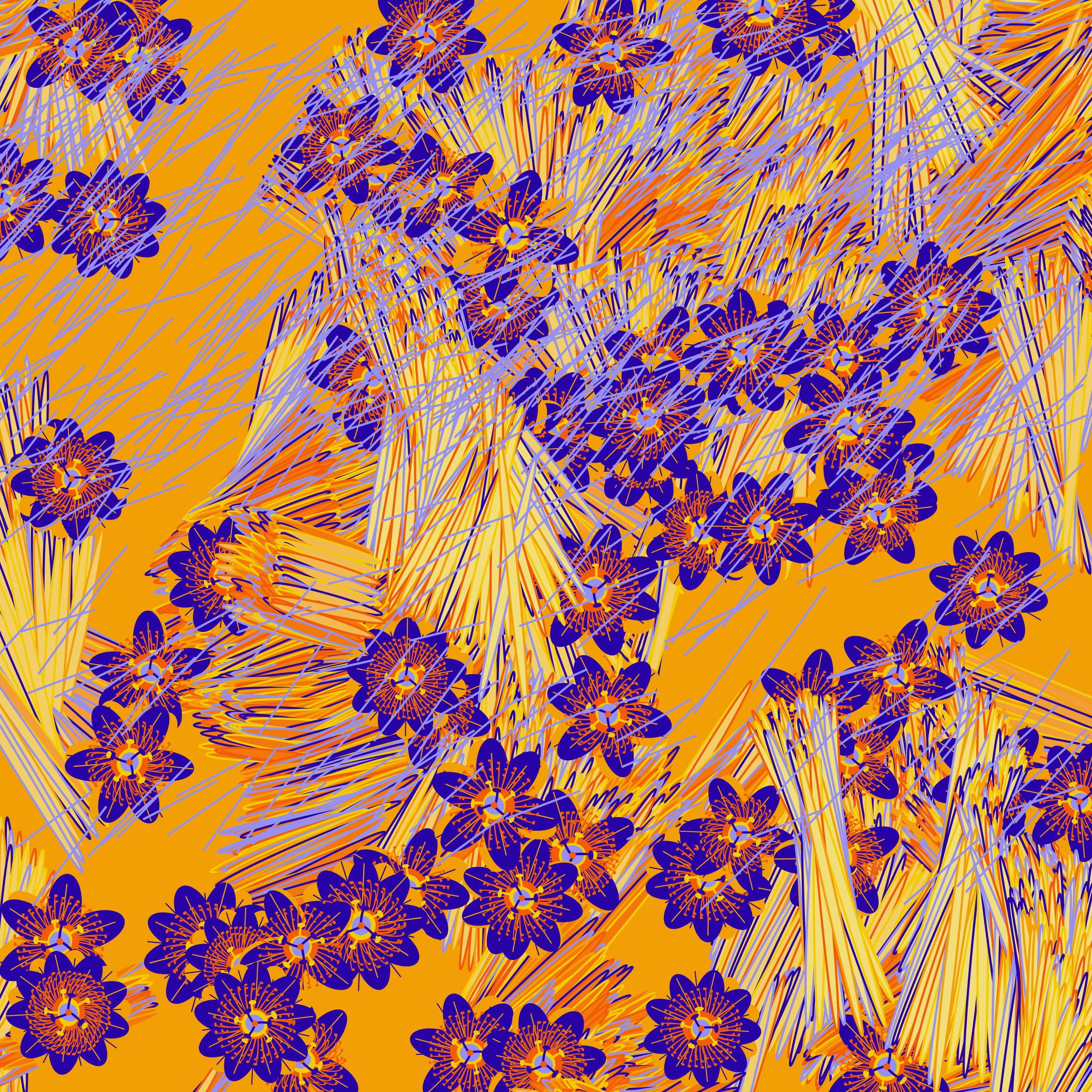 “Fragments of an infinite field” is a compositional system in which an idealized plant species is generated and arranged in a potentially infinite field of foliage. The main environmental parameter of the composition is the determination of a season of the year. The season determines the landscape’s colors and defines specific phenomena for each of them, such as rain in summer, snow in winter, petals falling in autumn, and pollen in spring. The flower has several possible variables, which can be macro aspects, affecting the entire population of the species, or micro, affecting each individual of the species differently. For example, the number of petals can be equal in all individuals or not. The number of filaments and other structures of the flower can undergo minor deviations, generating small mutations. The confusion between the figure (plant) and the background (earth, sky, other natural elements) is fascinating from a compositional point of view. The background colors are, most of the time, colors present in the figures, often breaking the boundary between them and, therefore, generating chromatic masses. In this project I also intend to research the following question: How to create parameters that resemble a living organism's growth? In this sense, the project approaches digital morphogenesis and the development of procedural organisms.