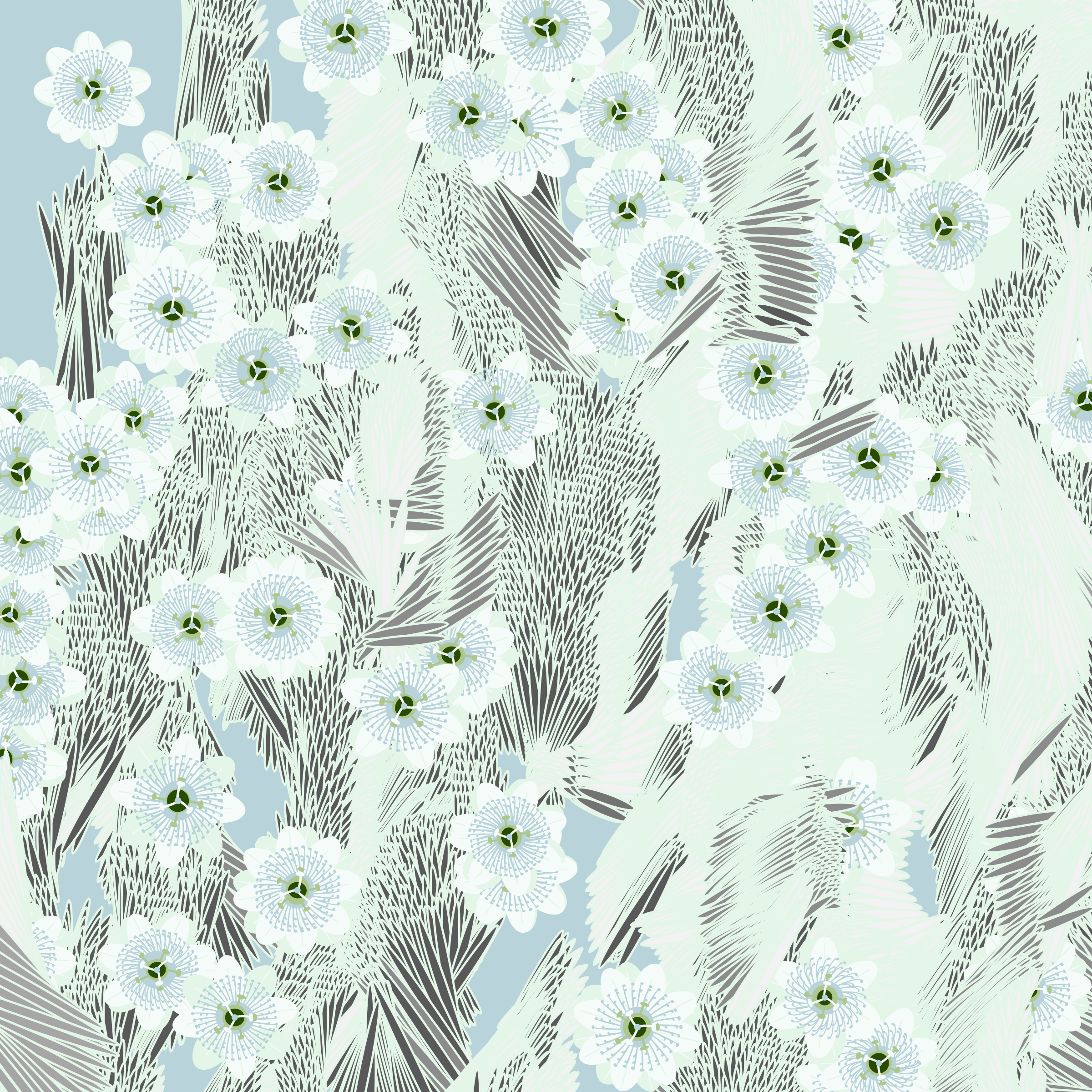 “Fragments of an infinite field” is a compositional system in which an idealized plant species is generated and arranged in a potentially infinite field of foliage. The main environmental parameter of the composition is the determination of a season of the year. The season determines the landscape’s colors and defines specific phenomena for each of them, such as rain in summer, snow in winter, petals falling in autumn, and pollen in spring. The flower has several possible variables, which can be macro aspects, affecting the entire population of the species, or micro, affecting each individual of the species differently. For example, the number of petals can be equal in all individuals or not. The number of filaments and other structures of the flower can undergo minor deviations, generating small mutations. The confusion between the figure (plant) and the background (earth, sky, other natural elements) is fascinating from a compositional point of view. The background colors are, most of the time, colors present in the figures, often breaking the boundary between them and, therefore, generating chromatic masses. In this project I also intend to research the following question: How to create parameters that resemble a living organism's growth? In this sense, the project approaches digital morphogenesis and the development of procedural organisms.