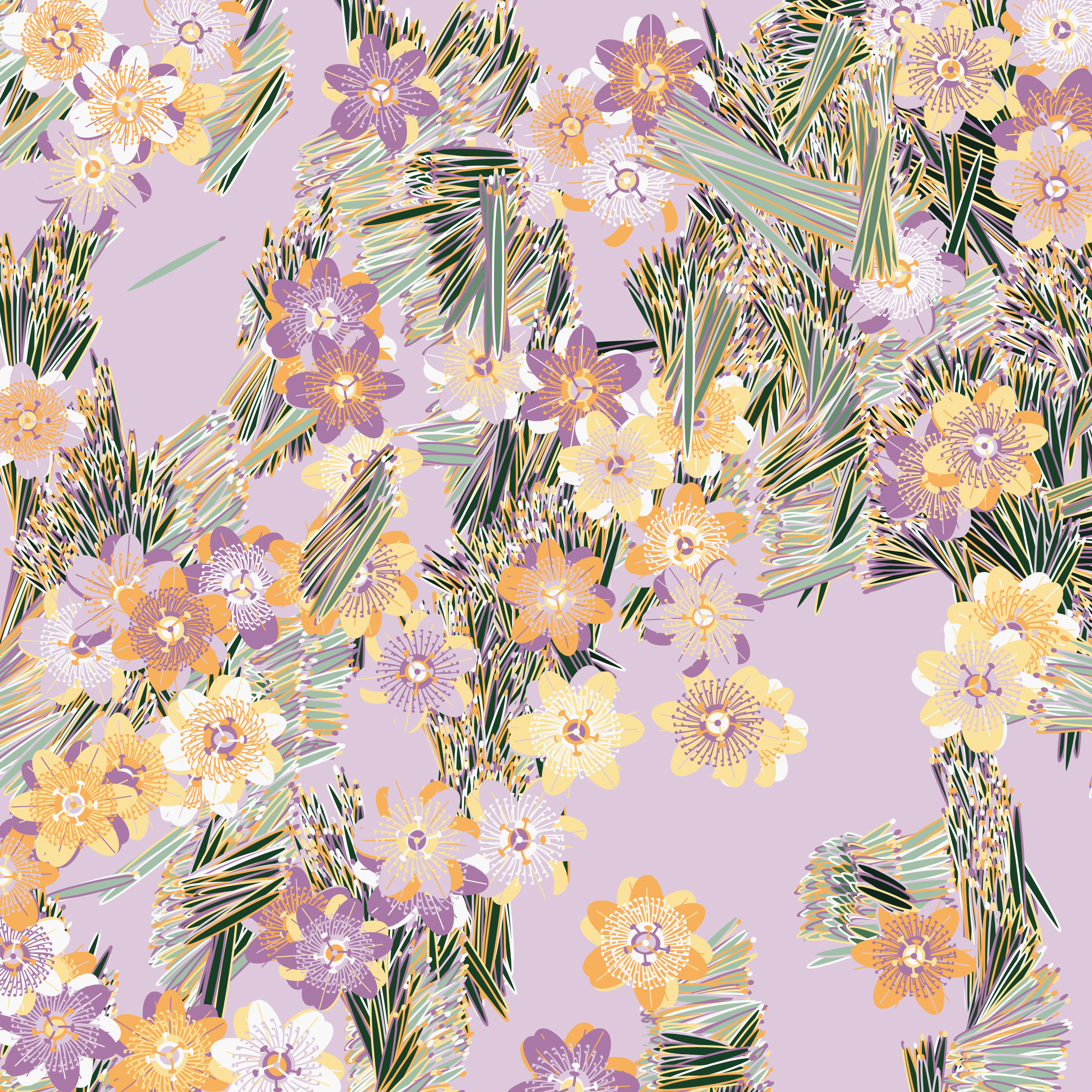 “Fragments of an infinite field” is a compositional system in which an idealized plant species is generated and arranged in a potentially infinite field of foliage. The main environmental parameter of the composition is the determination of a season of the year. The season determines the landscape’s colors and defines specific phenomena for each of them, such as rain in summer, snow in winter, petals falling in autumn, and pollen in spring. The flower has several possible variables, which can be macro aspects, affecting the entire population of the species, or micro, affecting each individual of the species differently. For example, the number of petals can be equal in all individuals or not. The number of filaments and other structures of the flower can undergo minor deviations, generating small mutations. The confusion between the figure (plant) and the background (earth, sky, other natural elements) is fascinating from a compositional point of view. The background colors are, most of the time, colors present in the figures, often breaking the boundary between them and, therefore, generating chromatic masses. In this project I also intend to research the following question: How to create parameters that resemble a living organism's growth? In this sense, the project approaches digital morphogenesis and the development of procedural organisms.