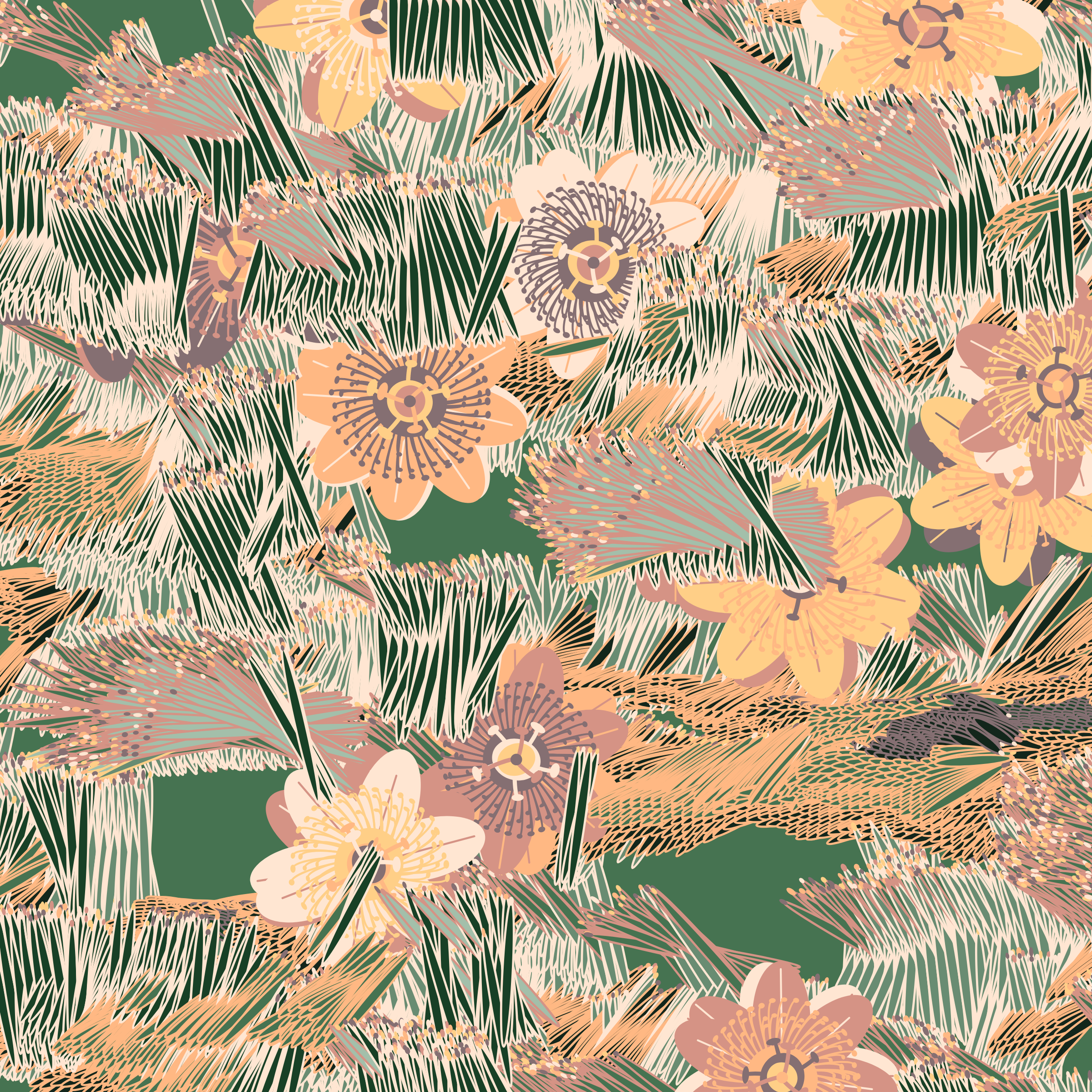 “Fragments of an infinite field” is a compositional system in which an idealized plant species is generated and arranged in a potentially infinite field of foliage. The main environmental parameter of the composition is the determination of a season of the year. The season determines the landscape’s colors and defines specific phenomena for each of them, such as rain in summer, snow in winter, petals falling in autumn, and pollen in spring. The flower has several possible variables, which can be macro aspects, affecting the entire population of the species, or micro, affecting each individual of the species differently. For example, the number of petals can be equal in all individuals or not. The number of filaments and other structures of the flower can undergo minor deviations, generating small mutations. The confusion between the figure (plant) and the background (earth, sky, other natural elements) is fascinating from a compositional point of view. The background colors are, most of the time, colors present in the figures, often breaking the boundary between them and, therefore, generating chromatic masses. In this project I also intend to research the following question: How to create parameters that resemble a living organism's growth? In this sense, the project approaches digital morphogenesis and the development of procedural organisms.