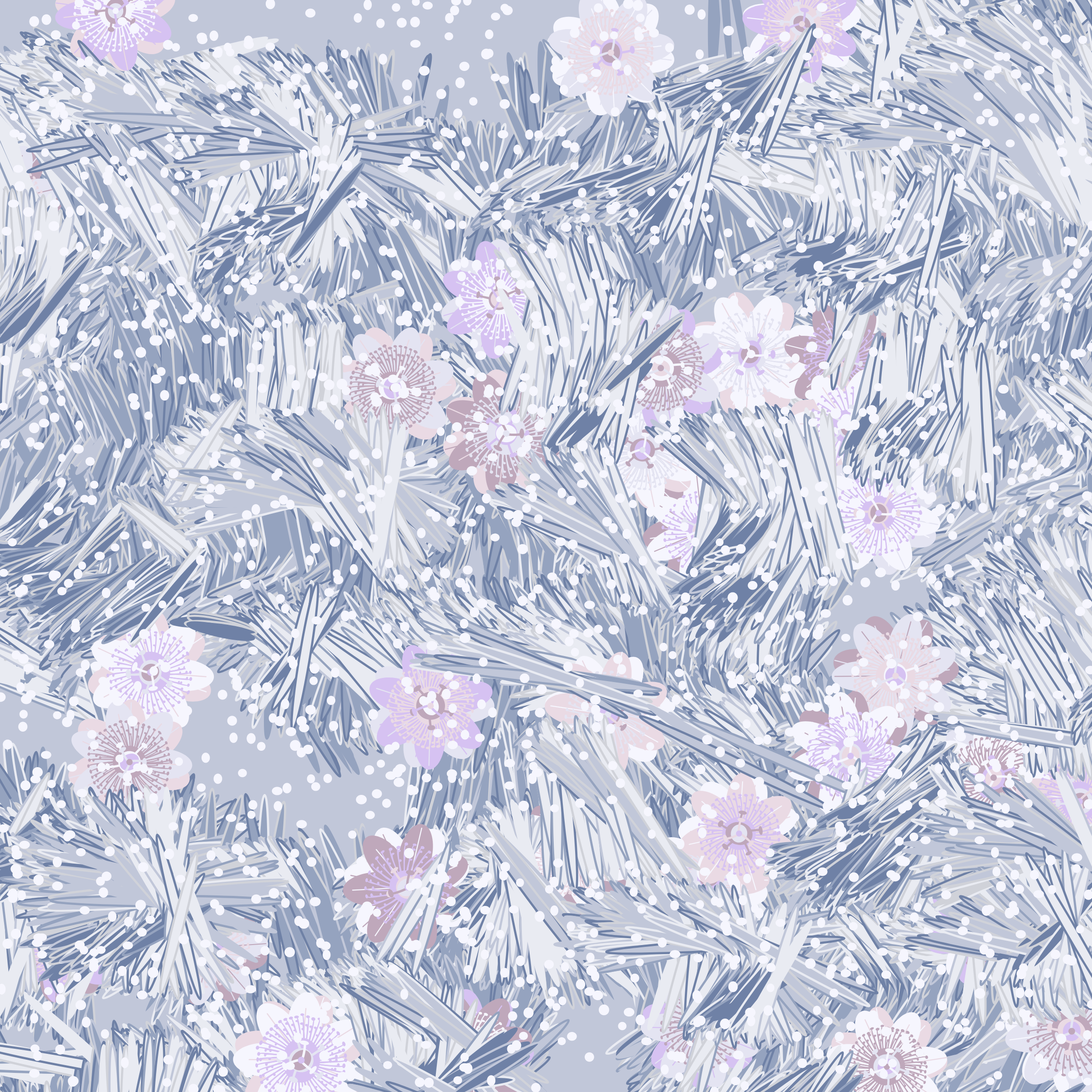 “Fragments of an infinite field” is a compositional system in which an idealized plant species is generated and arranged in a potentially infinite field of foliage. The main environmental parameter of the composition is the determination of a season of the year. The season determines the landscape’s colors and defines specific phenomena for each of them, such as rain in summer, snow in winter, petals falling in autumn, and pollen in spring. The flower has several possible variables, which can be macro aspects, affecting the entire population of the species, or micro, affecting each individual of the species differently. For example, the number of petals can be equal in all individuals or not. The number of filaments and other structures of the flower can undergo minor deviations, generating small mutations. The confusion between the figure (plant) and the background (earth, sky, other natural elements) is fascinating from a compositional point of view. The background colors are, most of the time, colors present in the figures, often breaking the boundary between them and, therefore, generating chromatic masses. In this project I also intend to research the following question: How to create parameters that resemble a living organism's growth? In this sense, the project approaches digital morphogenesis and the development of procedural organisms.